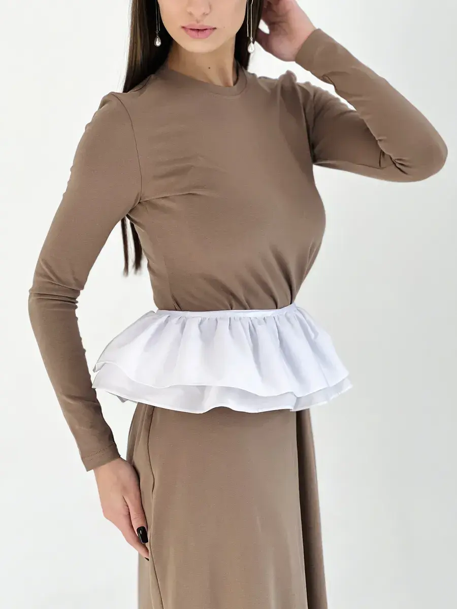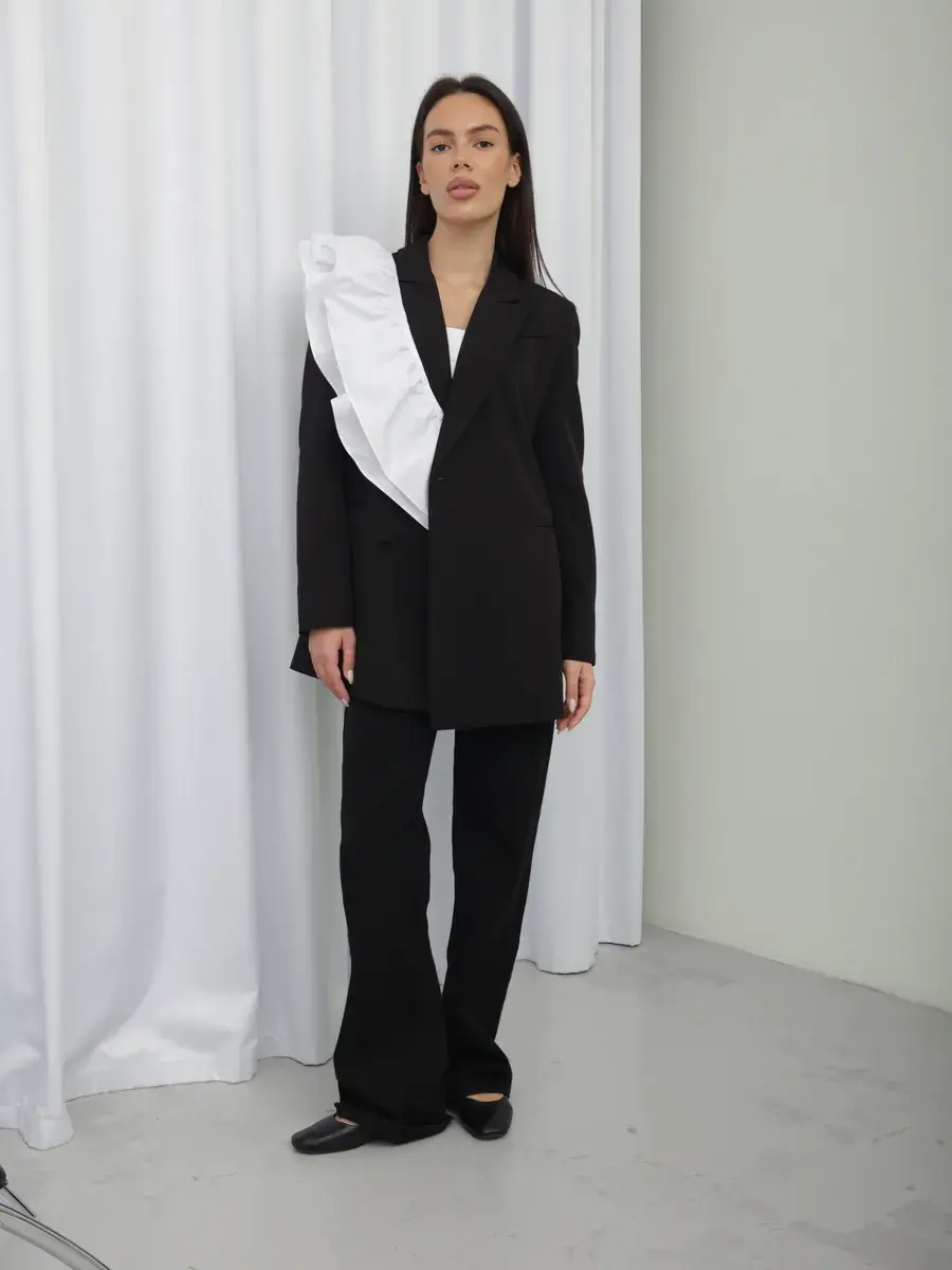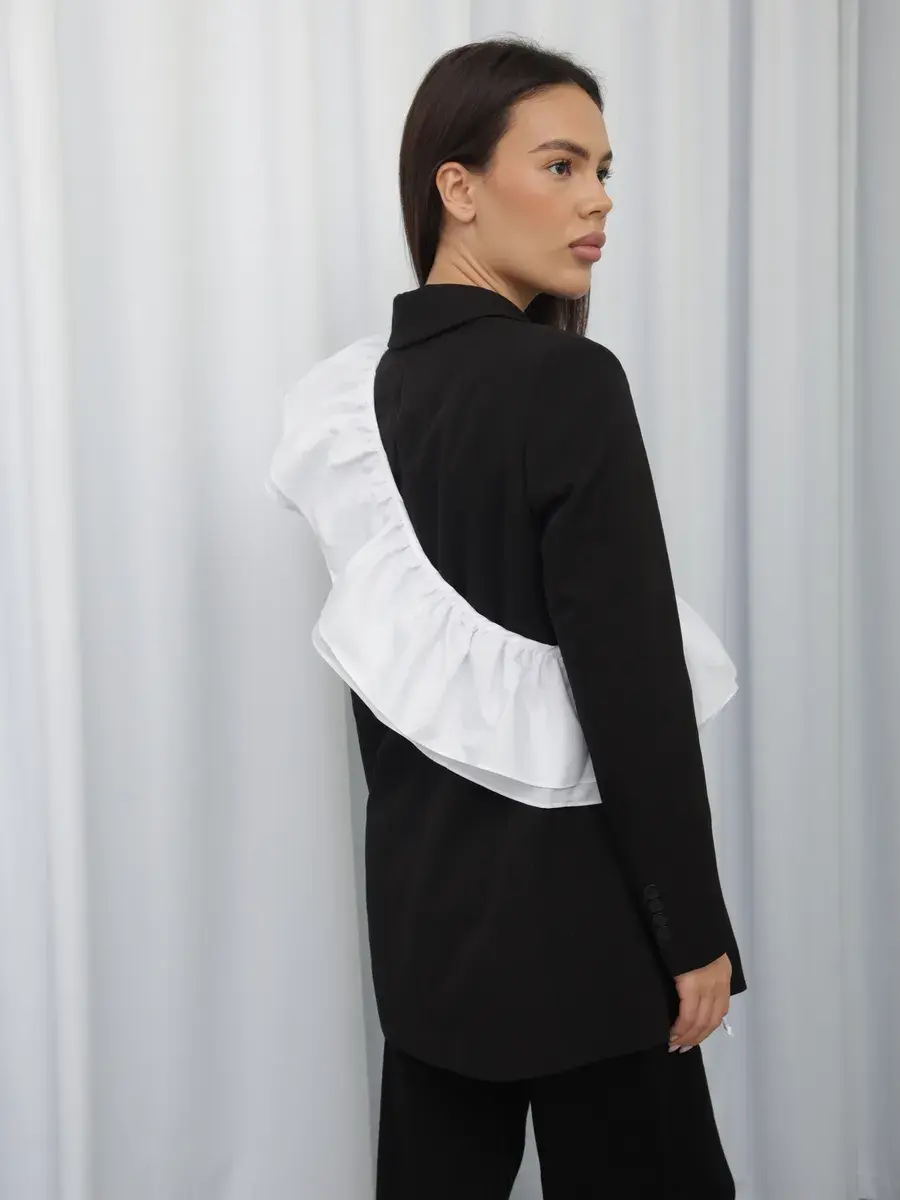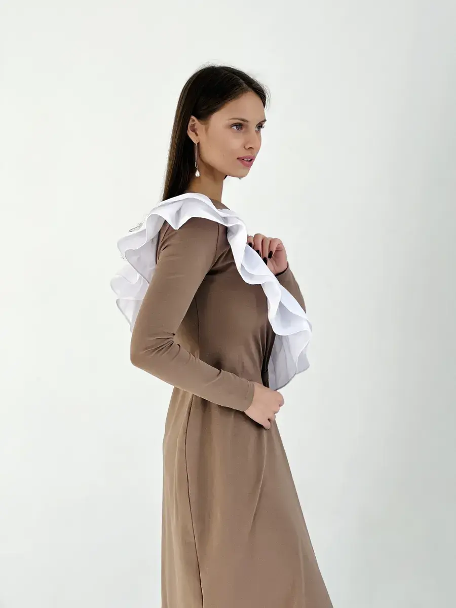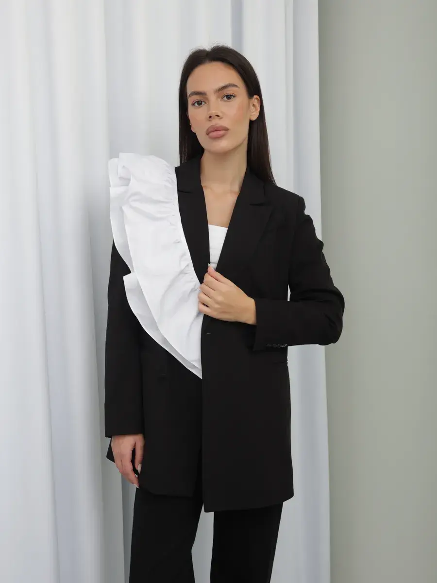 Накладной воротник — это оригинальный и эффектный аксессуар любой модницы. Идеальная акцентная деталь на любой праздник и торжество - день рождение, корпоратив, выпускной. Объемный воротничок с воланами является трендовой деталью для праздничного наряда или повседневного на работу в офис и в школу. Варианты ношения: на одно плечо или на шею, на грудь или на талию. Длина без завязок 1 метр, ширина – 16 см. Съемная баска с завязками – это универсальное украшение для женщин и девушек подростков. Жабо манишка дополнит вечерний женственный наряд и придаст образу романтичность и нежность, можно надеть в театр, на праздник или как деталь для вечеринки, фотосессии или на свидание. Особенно стильно будет сочетаться с брутальными вещами: свитшот, футболка, тренч, косуха. Также можно создавать более женственный образ, при сочетании с лаконичными платьями, блузами, свитерами. Рюша – акцентная деталь, поэтому сочетать ее лучше с предметами гардероба с минималистичным кроем. В этом случае базовые изделия гардероба замечательно подойдут: пиджаки и джемперы, брюки, джинсы, юбки. Это отличный подарок для любимой подруги и девушке, маме и жене, сестре. Хорошо держит форму и объем, важно после упаковки разутюжить складки или отпарить на низких температурах, так рюши раскроются, как бутон цветка. Баска на одно плечо подойдет для стильного офисного делового стиля. Базовые вещи - будут выглядеть по-другому с этим аксессуаром. Садится на любую фигуру от 40-56 размера. Произведено в России. Ручная работа. Информация по уходу: Ручная стирка при температуре не более 30 %