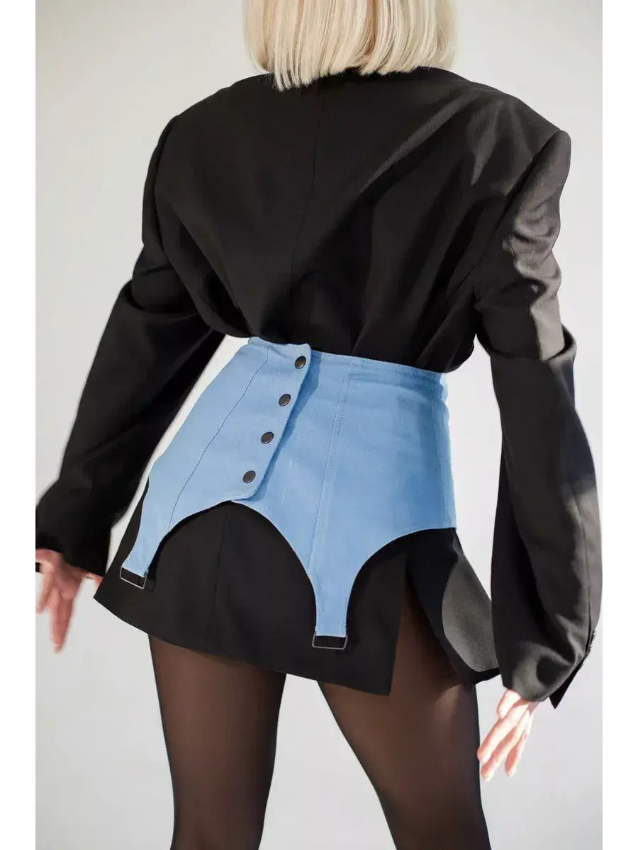 Баска с рельефными швами — это оригинальный и эффектный аксессуар любой модницы. На талию- 70-75 см. Размер 44-46. Является модной деталью для праздничного наряда или повседневного на работу в офис. Она визуально создаст эффект осиной талии. Съемная баска имеет фигурную линию низа, имитирующая подвязки. Корсетный пояс утягивающий сшит из плотной качественной джинсы с подкладкой из вискозы. Имеет застежку в виде кнопок. Широкая форма пояса поможет скорректировать пропорции любой фигуры, скрыв недостатки и подчеркнув при этом Ваши достоинства. Это универсальное украшение для женщин и девушек подростков. Еще один плюс баски – он превращает даже обычную простую одежду в эксклюзивный наряд. Ткань отлично сохраняет форму и не мнется. Подойдет для нарядного образа на вечер и на дискотеку, корпоратив, праздник, для танцев на вечеринку в клуб. Корсет дополнит вечерний женственный наряд и придаст образу дерзость и сексуальность, можно надеть в театр и в кино, на праздник, фотосессию или на свидание в ресторан. Особенно стильно будет сочетаться с платьями и юбками. Это отличный подарок для любимой подруги и девушке, маме и жене, сестре. Широкий пояс-корсаж, имитирующий пояс для чулок подойдет для стильного офисного делового стиля. Базовые вещи - будут выглядеть по-другому с этим аксессуаром. Произведено в России. Ручная работа. Информация по уходу: Ручная стирка при температуре не более 30 %