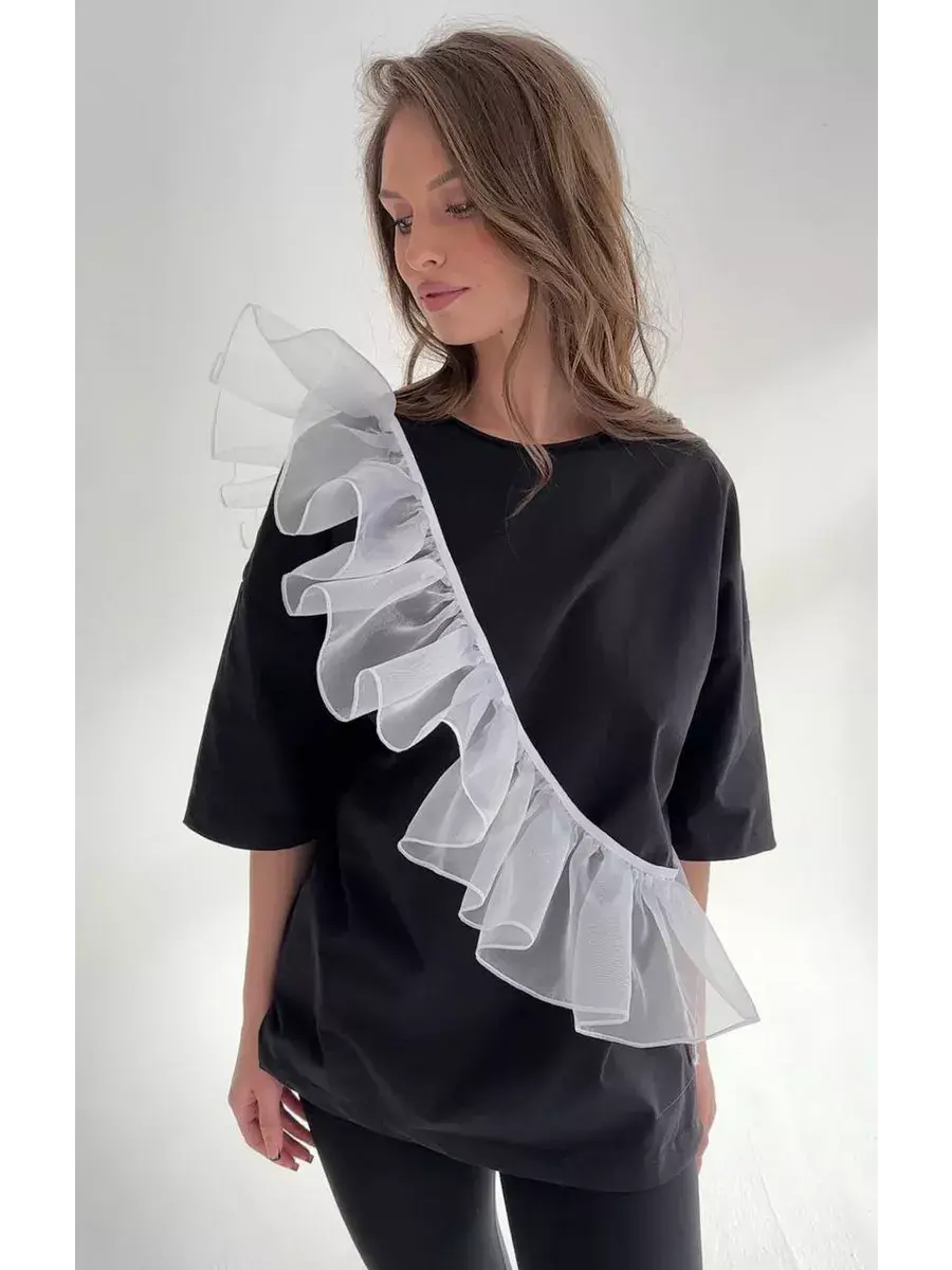 Накладной воротник — это оригинальный и эффектный аксессуар любой модницы. Объемный воротничок с воланами является трендовой деталью для праздничного наряда или повседневного на работу в офис и в школу. Варианты ношения: на одно плечо или на шею, на грудь или на талию. Длина без завязок 1 метр, ширина – 16 см. Съемная баска с завязками – это универсальное украшение для женщин и девушек подростков. Жабо манишка дополнит вечерний женственный наряд и придаст образу романтичность и нежность, можно надеть в театр, на праздник или как деталь для вечеринки, фотосессии или на свидание. Особенно стильно будет сочетаться с брутальными вещами: свитшот, футболка, тренч, косуха. Также можно создавать более женственный образ, при сочетании с лаконичными платьями, блузами, свитерами. Рюша – акцентная деталь, поэтому сочетать ее лучше с предметами гардероба с минималистичным кроем. В этом случае базовые изделия гардероба замечательно подойдут: пиджаки и джемперы, брюки, джинсы, юбки. Это отличный подарок для любимой подруги и девушке, маме и жене, сестре. Хорошо держит форму и объем, важно после упаковки разутюжить складки или отпарить на низких температурах, так рюши раскроются, как бутон цветка. Баска на одно плечо подойдет для стильного офисного делового стиля. Базовые вещи - будут выглядеть по-другому с этим аксессуаром. Садится на любую фигуру от 40-56 размера. Произведено в России. Ручная работа. Информация по уходу: Ручная стирка при температуре не более 30 %