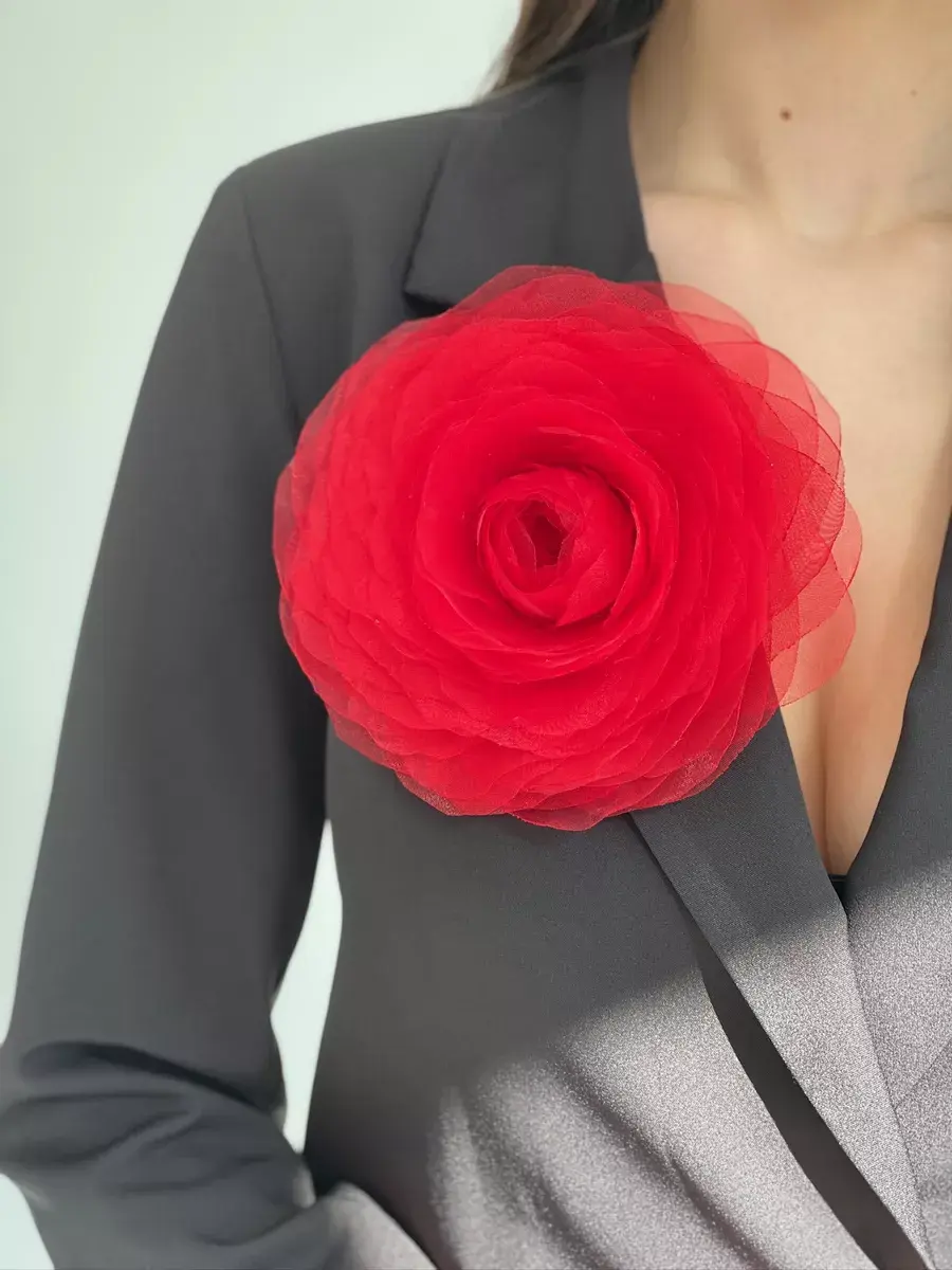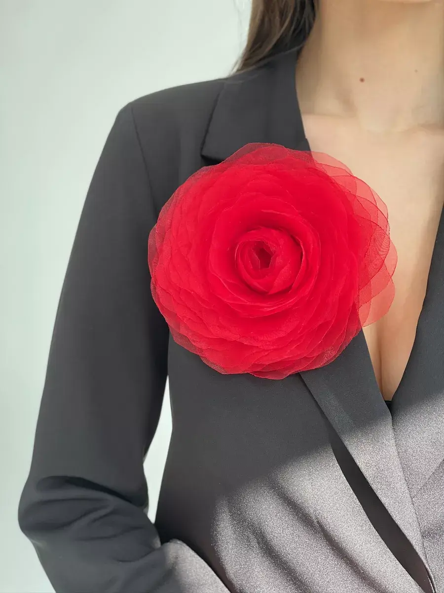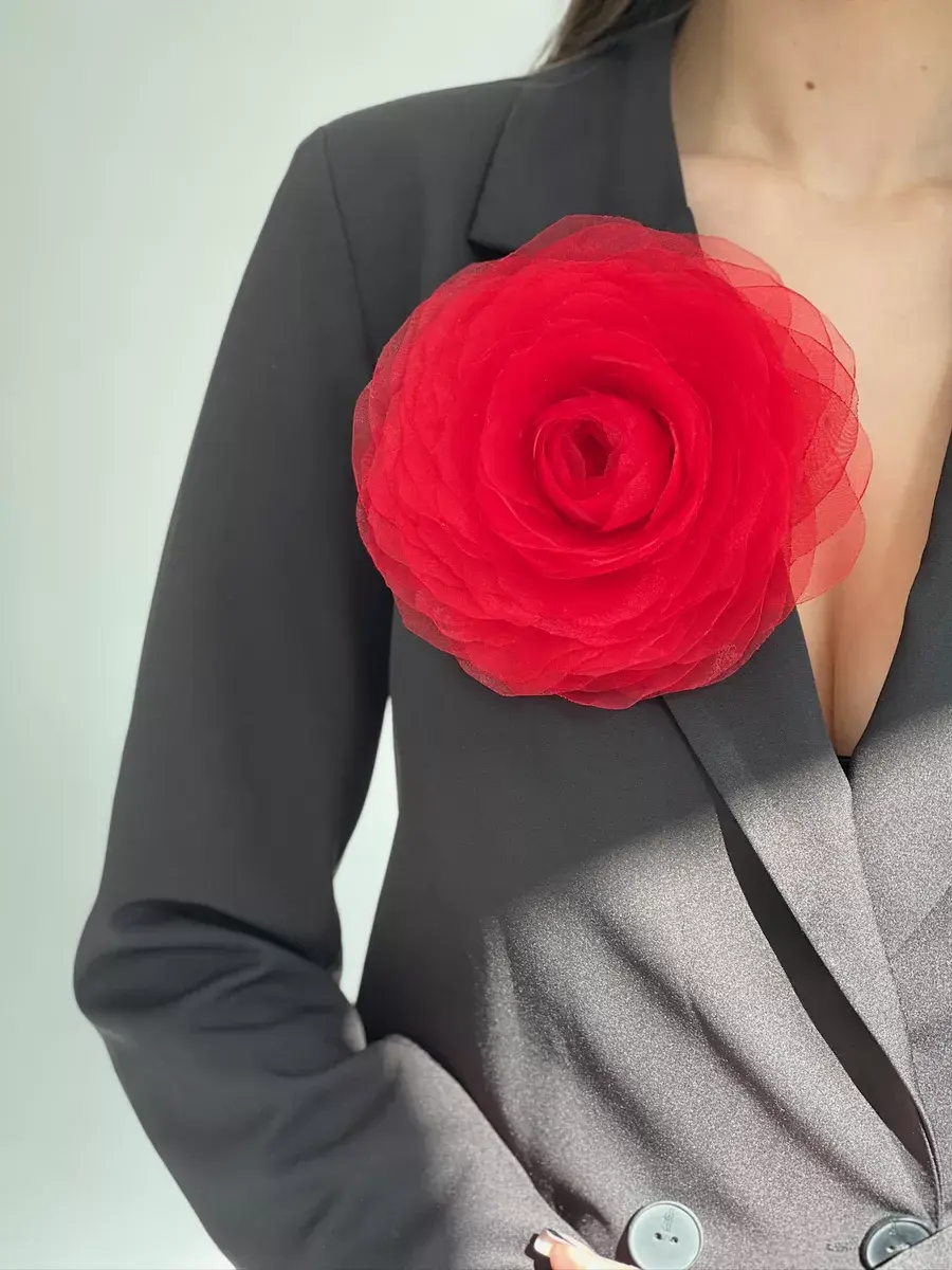 Брошь выполнена в виде цветка пионовидной розы. Диаметр аксессуара 17-18 см, высота - 5 см. Необычное украшение из ткани — трендовый аксессуар, которым можно украсить одежду и создать яркий образ для торжественного мероприятия. Идеальная акцентная деталь на любой праздник и торжество - 8 марта, 23 февраля, день рождение, корпоратив, выпускной. Каждый лепесток броши сделан вручную. Изготовлен из органзы. Это яркий акцент в повседневных луках, и оригинальный аксессуар на вечеринку, свадьбу, поход в кино, музей или ресторан. Упакована в подарочную коробку и после получения, её можно дарить сестре, любимой жене, маме, подруге или коллеге. Объёмная большая роза – эффектное украшение для женщин и девушек. Изделие имеет крепление в виде специальной булавки. Выполнено качественно и выглядит как реалистичный крупный цветок. Красивый подарок на Новый год, на день рождения, для семейной фотосессии и любой праздник и торжество. Брошь идеально дополнит как повседневные образы на каждый день, так и вечерние праздничные. Будет отлично смотреться с брючным костюмом, элегантным платьем, пальто, рубашкой и блузкой и даже с простой белой футболкой. Украшение универсально: его можно использовать как заколку для волос, для сумки, шляпки и даже на туфли. Сделано в России.
