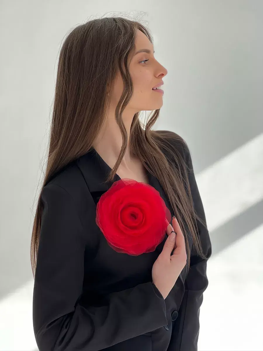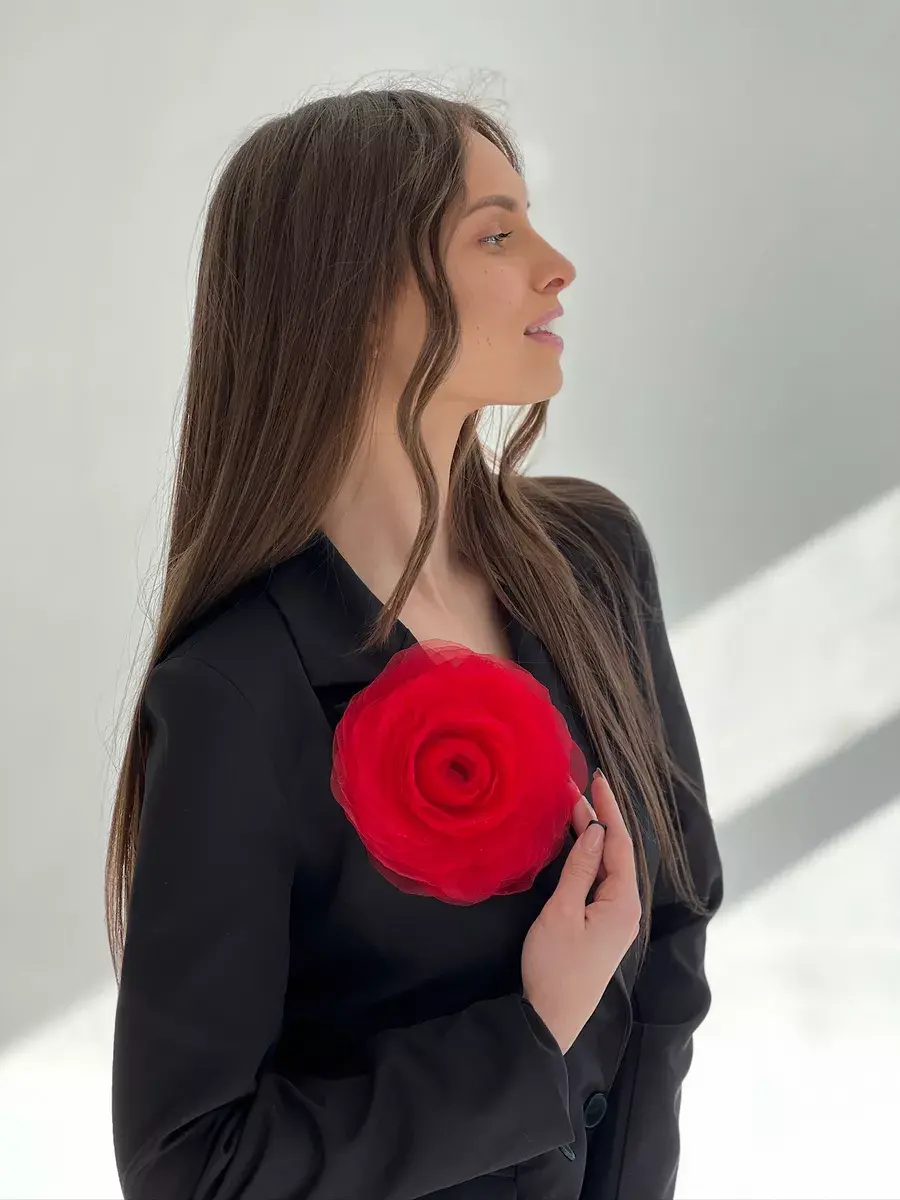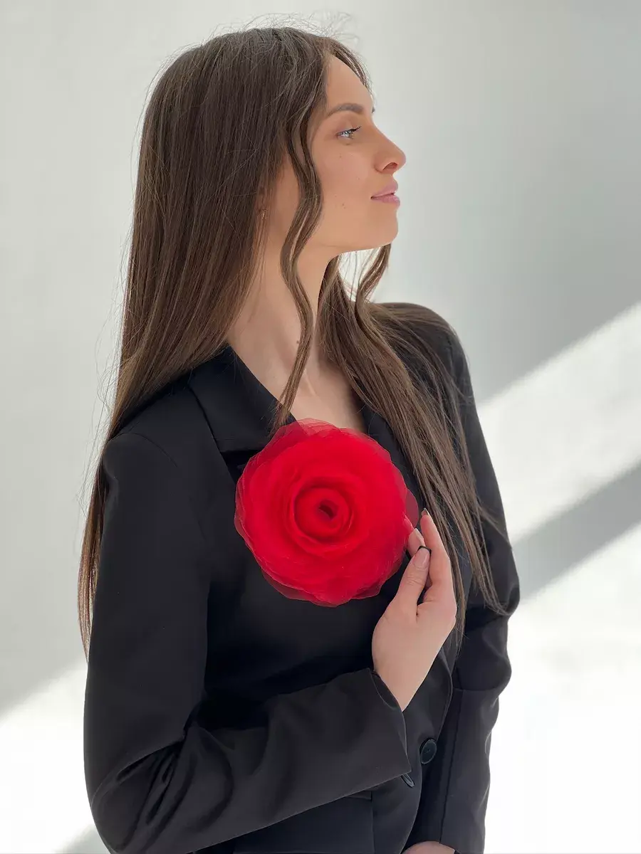 Брошь выполнена в виде цветка пионовидной розы. Диаметр аксессуара 17-18 см, высота - 5 см. Необычное украшение из ткани — трендовый аксессуар, которым можно украсить одежду и создать яркий образ для торжественного мероприятия. Идеальная акцентная деталь на любой праздник и торжество - 8 марта, 23 февраля, день рождение, корпоратив, выпускной. Каждый лепесток броши сделан вручную. Изготовлен из органзы. Это яркий акцент в повседневных луках, и оригинальный аксессуар на вечеринку, свадьбу, поход в кино, музей или ресторан. Упакована в подарочную коробку и после получения, её можно дарить сестре, любимой жене, маме, подруге или коллеге. Объёмная большая роза – эффектное украшение для женщин и девушек. Изделие имеет крепление в виде специальной булавки. Выполнено качественно и выглядит как реалистичный крупный цветок. Красивый подарок на Новый год, на день рождения, для семейной фотосессии и любой праздник и торжество. Брошь идеально дополнит как повседневные образы на каждый день, так и вечерние праздничные. Будет отлично смотреться с брючным костюмом, элегантным платьем, пальто, рубашкой и блузкой и даже с простой белой футболкой. Украшение универсально: его можно использовать как заколку для волос, для сумки, шляпки и даже на туфли. Сделано в России.