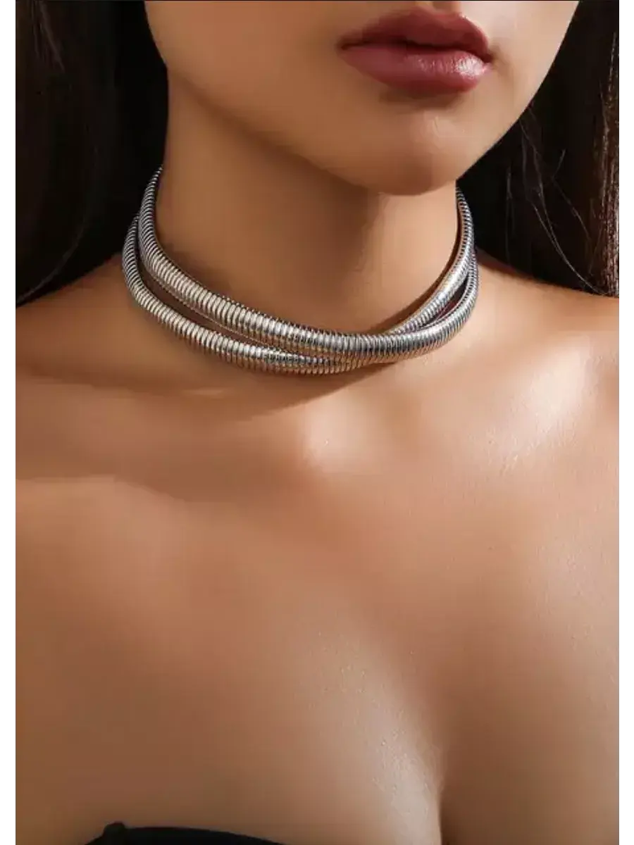 Стильное крупное колье на шею под серебро – это модное украшение, которое подчеркнет ваш образ. Идеальный вариант на корпоратив и празднование 8 марта. Ширина 2,5, длина 33 см и удлинительная цепочка 8 см. Изготовлено из высококачественного гипоаллергенного ювелирного сплава серебристого цвета и имеет стойкое покрытие - 18K, которое прослужит вам долгое время и не облезет при первой же носке! Поэтому украшение на шею не темнеет, не окисляется со временем и подходит для чувствительной кожи. Металлическое яркое премиум ожерелье в виде минималистичного обруча очень популярно среди девушек и женщин. Глянцевый блеск в стиле олд мани (old money) идеально впишется в любой образ. Украсит ваш офисный лук, и так же будет отличным дополнением к праздничному нарядному образу. Это необычное и элегантное украшение, которое можно носить как в повседневной жизни, так и на особые мероприятия. Сочетание необычной формы и цвета делает его универсальным и легко сочетающимся с различными нарядами, он отлично подойдет под вечерний, повседневный, свадебный и новогодний образ. Удобный замочек карабин. С таким колье вы всегда будете в центре внимания. У нас вы найдете оригинальный подарок для женщин на любой праздник, день рождения, новый год или 8 марта. Цвет серебро. Наш трендовый аксессуар можно сочетать с деловым стилем - на работу в офис, на прогулку, в гости. Можно преподнести в качестве подарка любимой девушке и жене, бабушке, подруге и сестре, маме и дочке подростку. Изысканный чокер придаст вечернему образу элегантности. Наша женская бижутерия всегда будет носиться с удовольствием.
