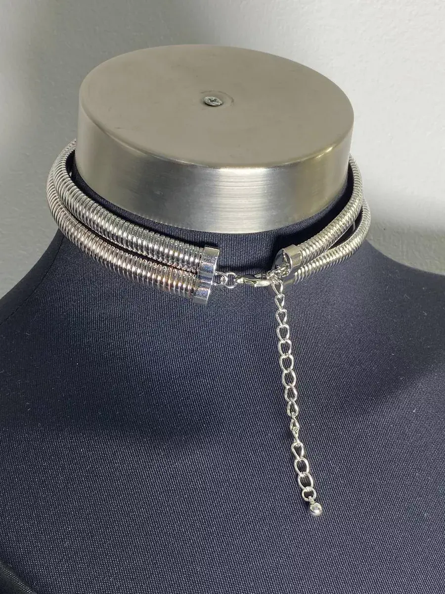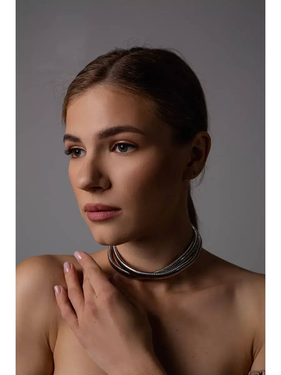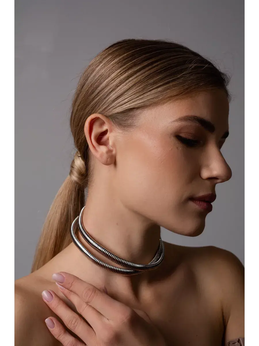чокер металлический двойной-серебро