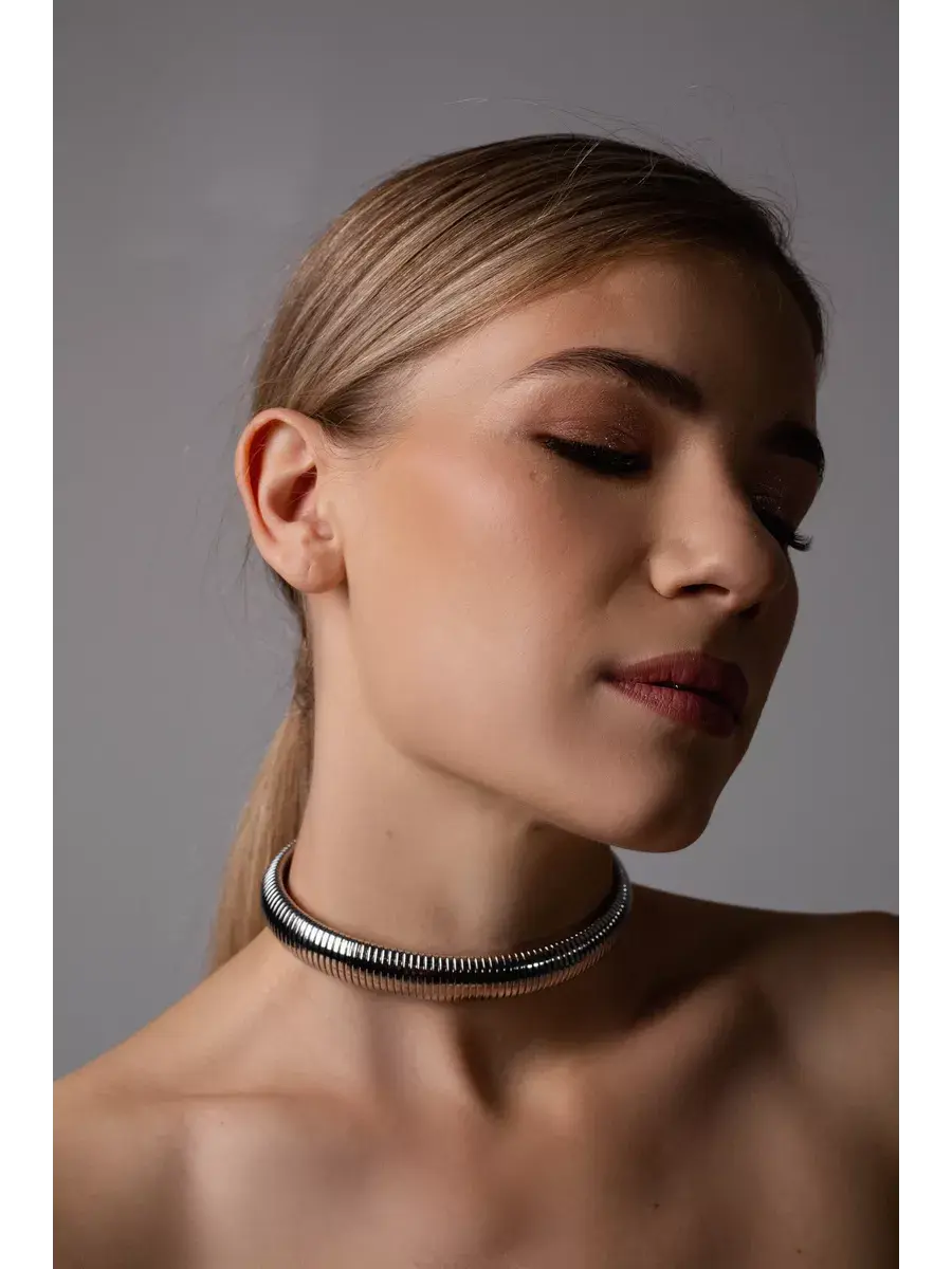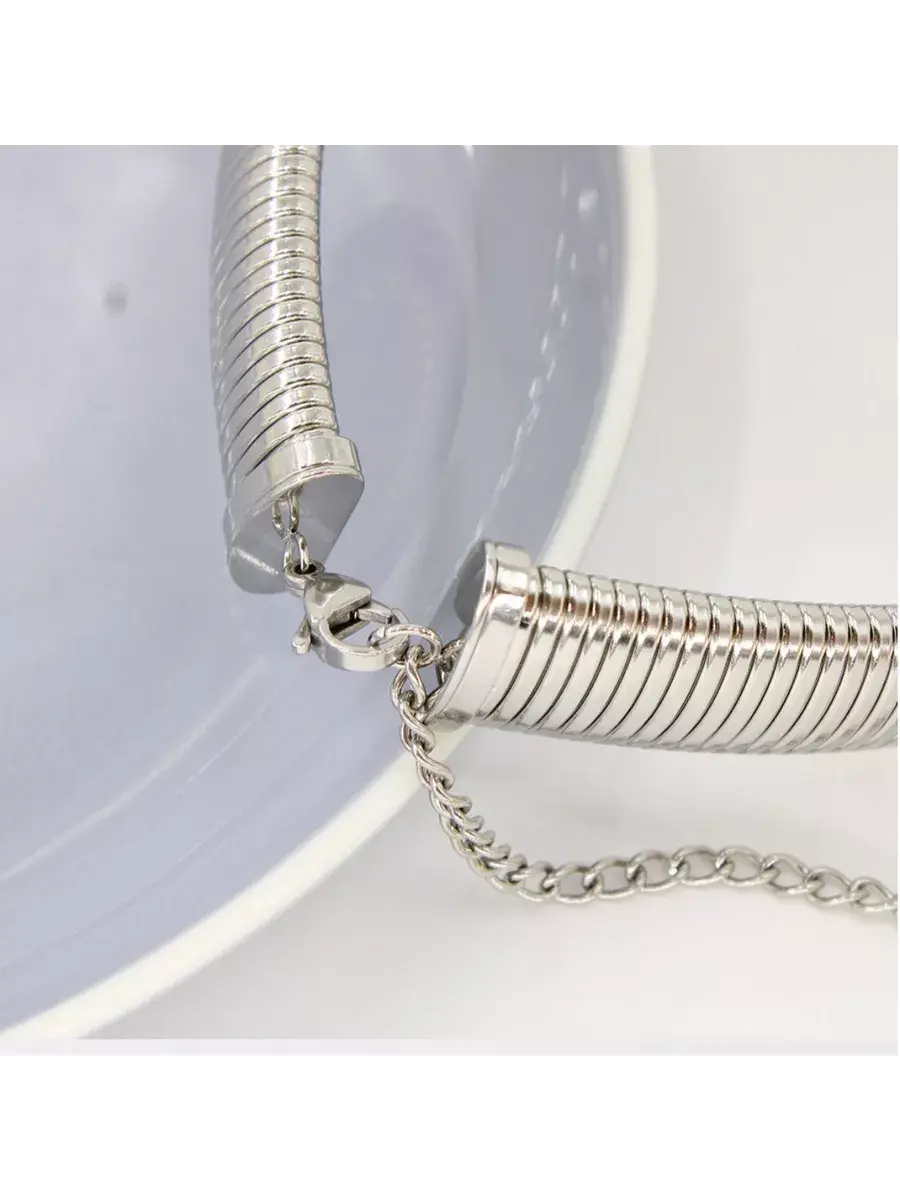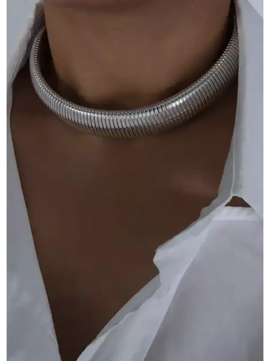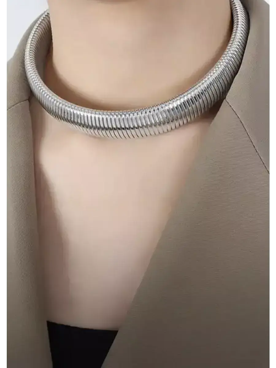 Стильное крупное колье на шею под серебро – это модное украшение, которое подчеркнет ваш образ. Идеальный вариант на корпоратив и празднование 8 марта. Ширина 1,5, длина 32 + удлинительная цепочка 7 см. Изготовлено из высококачественного гипоаллергенного ювелирного сплава серебристого цвета и имеет стойкое покрытие - 18K, которое прослужит вам долгое время и не облезет при первой же носке! Поэтому украшение на шею не темнеет, не окисляется со временем и подходит для чувствительной кожи. Металлическое яркое премиум ожерелье в виде минималистичного обруча очень популярно среди девушек и женщин. Глянцевый блеск в стиле олд мани (old money) идеально впишется в любой образ. Украсит ваш офисный лук, и так же будет отличным дополнением к праздничному нарядному образу. Это необычное и элегантное украшение, которое можно носить как в повседневной жизни, так и на особые мероприятия. Сочетание необычной формы и цвета делает его универсальным и легко сочетающимся с различными нарядами, он отлично подойдет под вечерний, повседневный, свадебный и новогодний образ. Удобный замочек карабин. С таким колье вы всегда будете в центре внимания. У нас вы найдете оригинальный подарок для женщин на любой праздник, день рождения, новый год или 8 марта. Цвет серебро. Наш трендовый аксессуар можно сочетать с деловым стилем - на работу в офис, на прогулку, в гости. Можно преподнести в качестве подарка любимой девушке и жене, бабушке, подруге и сестре, маме и дочке подростку. Изысканный чокер придаст вечернему образу элегантности. Наша женская бижутерия всегда будет носиться с удовольствием.