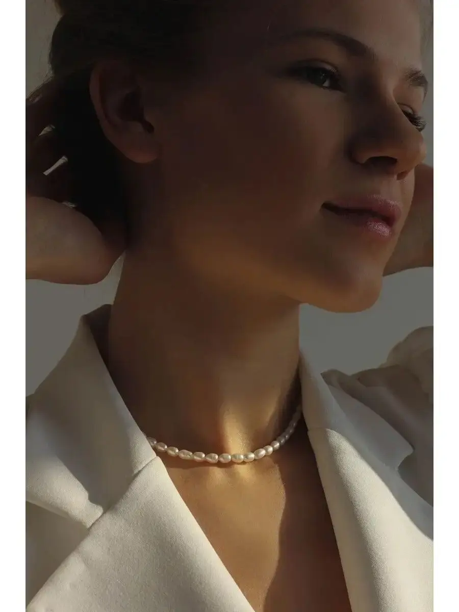 Нежное колье из натурального речного жемчуга высокого качества. Идеальный вариант на корпоратив и празднование 8 марта. Максимальная длина 39 см, минимальная 35 см. Фурнитура выполнена из гипоаллергенного сплава и имеет стойкое покрытие позолотой - 24K, прослужит вам долгое время и не облезет при первой же носке! Поэтому украшение на шею не темнеет, не окисляется со временем и подходит для чувствительной кожи. Цвет цепочки золото. Так же если обвить ожерелье вокруг руки в два оборота, получится красивый браслет из жемчуга! Наш модный и стильный аксессуар на шею дополнит любой образ, его можно сочетать с деловым или повседневным стилем - на работу в офис, на прогулку, в гости, а так же дополнит вечерний праздничный образ, отлично для фотосессии, корпоратив. Бусы с жемчугом можно преподнести в качестве подарка любимой девушке и жене, бабушке, подруге и сестре, маме и дочке подростку. Подарок в виде модного жемчужного ожерелья уместен на день рождение и помолвку, любой праздник. Изысканный чокер придаст вечернему образу элегантности. Белая жемчужная нить на шее у невесты будет великолепным акцентом и достойным завершением нарядного образа на свадьбе. Наша женская бижутерия на шею всегда будет носиться с удовольствием. В комплекте идёт красивая подарочная коробочка, в котором подарок будет еще приятнее.