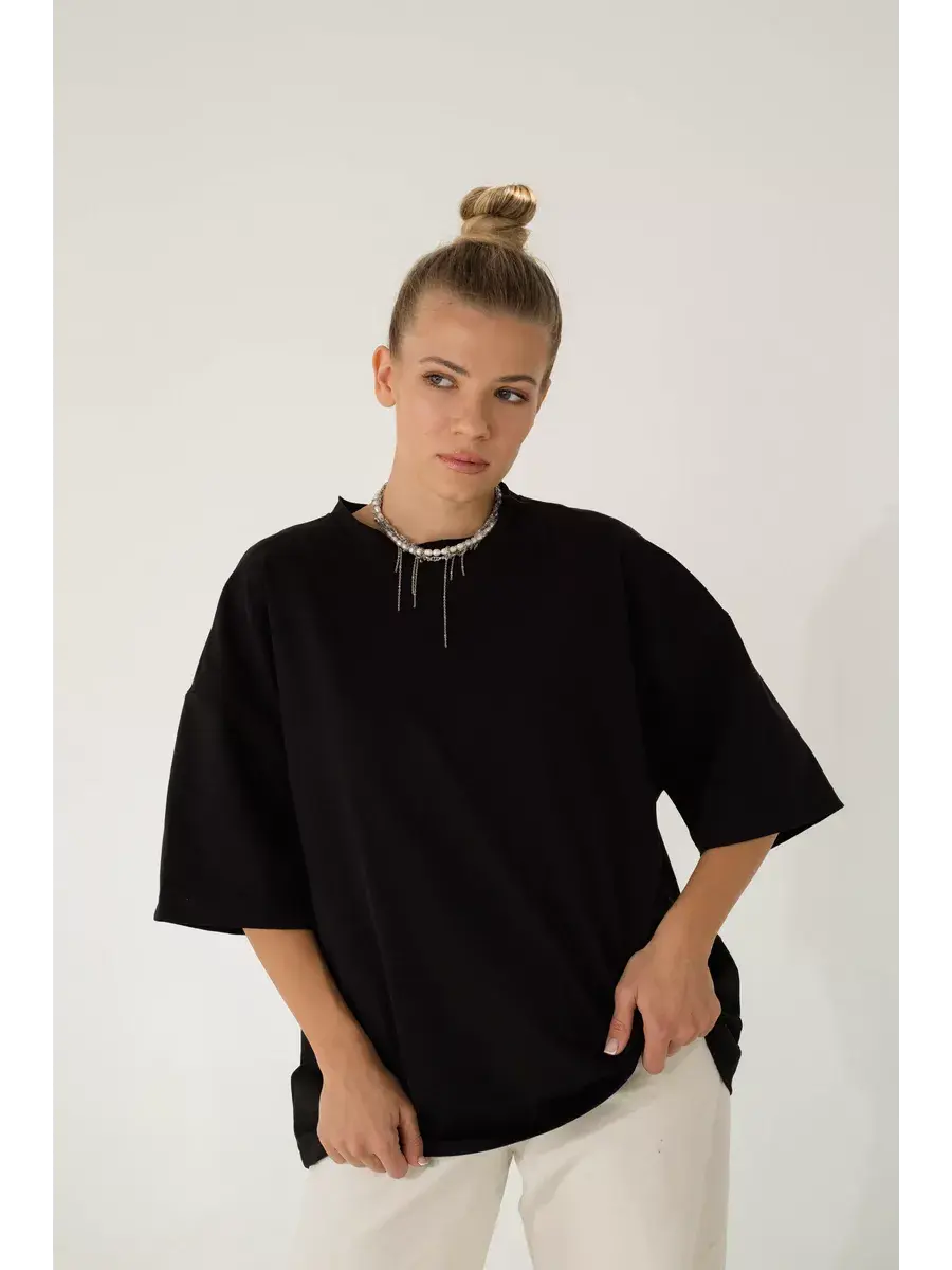 Стильная базовая футболка оверсайз поможет вам создать модный образ на каждый день. Плотность ткани - 280 гр/м. Трикотажный топ с рукавами на 95% выполнен из высококачественного плотного дышащего хлопка, что позволяет вещи не вытягиваться и не деформироваться после стирки и красиво сидеть на любой фигуре. Используем ткань только высшего качества Турецкого производства. Невероятно комфортная, приятная к телу базовая футболка правильной длины – слегка удлиненная, которая хорошо смотрится навыпуск и в заправленном виде и более универсальная по сравнению с короткими или укороченными моделями. Свободный покрой оверсайз не сковывает движения, что важно для повседневной носки. Это базовая вещь, которая легко сочетается с любой одеждой и подойдет для создания как повседневного, так и нарядного образа. А если добавить к нему яркие аксессуары, то ваш вечерний образ на вечеринку и дискотеку в клуб точно не останется незамеченным. Это универсальная и практичная вещь, которую вы можете носить весной, летом и осенью. Летняя молодежная футболка прямого кроя сочетается с любым стилем и станет вашим любимчиком при выборе образа в офис и на работу. Легкая футболка y2k подходит для занятий спортом: фитнеса и йоги, бега и гимнастики, тренировок в зале и танцев и физкультуре в спортзале в школе. Подойдет женщинам и девушкам любого роста: высоким и невысоким. Ее могут носить взрослые и подростки. Вы можете приобрести ее для себя или в качестве подарка на день рождения маме, сестре, жене, подруге и дочке. Отлично подойдет любителям аниме, панк одежды, ретро винтажного стиля, гранж дрейн рок винтаж. Идеальна для отдыха дома и на даче, в поездку на море для прогулок по пляжу.