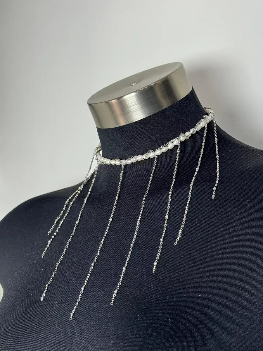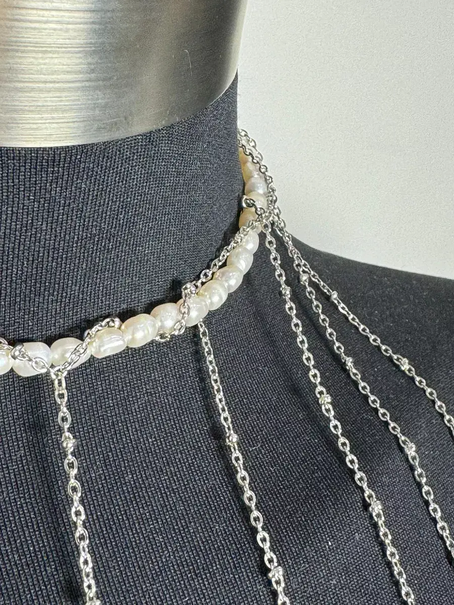 Стильное ожерелье из натурального речного жемчуга с цепочками. Максимальная длина 39 см, минимальная 35 см. Фурнитура выполнена из гипоаллергенного сплава и имеет стойкое покрытие, которое прослужит вам долгое время и не облезет при первой же носке! Поэтому украшение на шею не темнеет, не окисляется со временем и подходит для чувствительной кожи. Цвет цепочки серебро. Наш модный и стильный аксессуар дополнит любой образ, его можно сочетать с деловым или повседневным стилем - на работу в офис, на прогулку, в гости, а так же дополнит праздничный образ в театр и ресторан, отлично для фотосессии, корпоратива. Бусы с жемчугом можно преподнести в качестве подарка любимой девушке и жене, бабушке, подруге и сестре, маме и дочке подростку. Подарок в виде модного жемчужного ожерелья уместен на день рождение и помолвку, любой праздник. Изысканный чокер придаст вечернему образу элегантности. Белая жемчужная нить на шее у невесты будет великолепным акцентом и достойным завершением нарядного образа на свадьбе и девичнике. Наша женская бижутерия всегда будет носиться с удовольствием. В комплекте идёт красивая подарочная коробочка, в котором подарок будет еще приятнее.