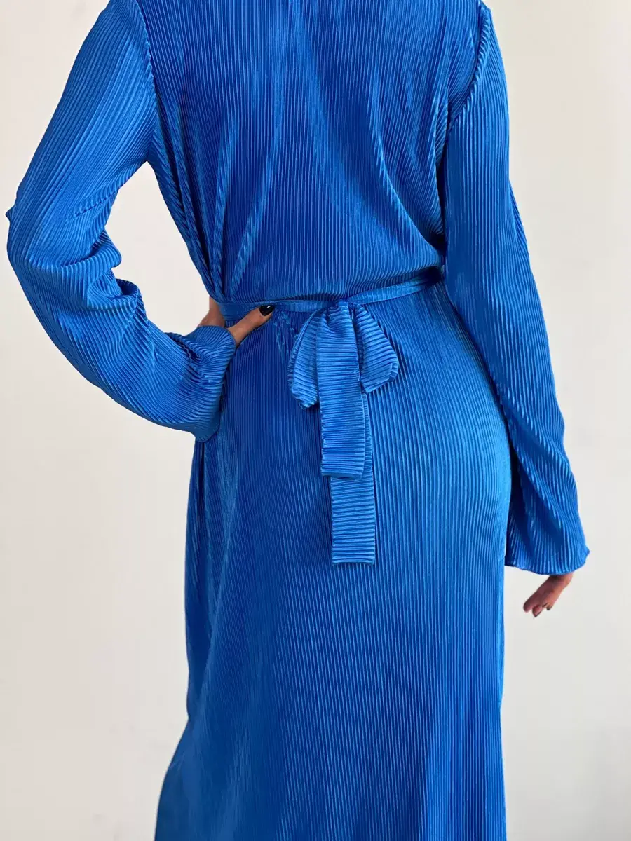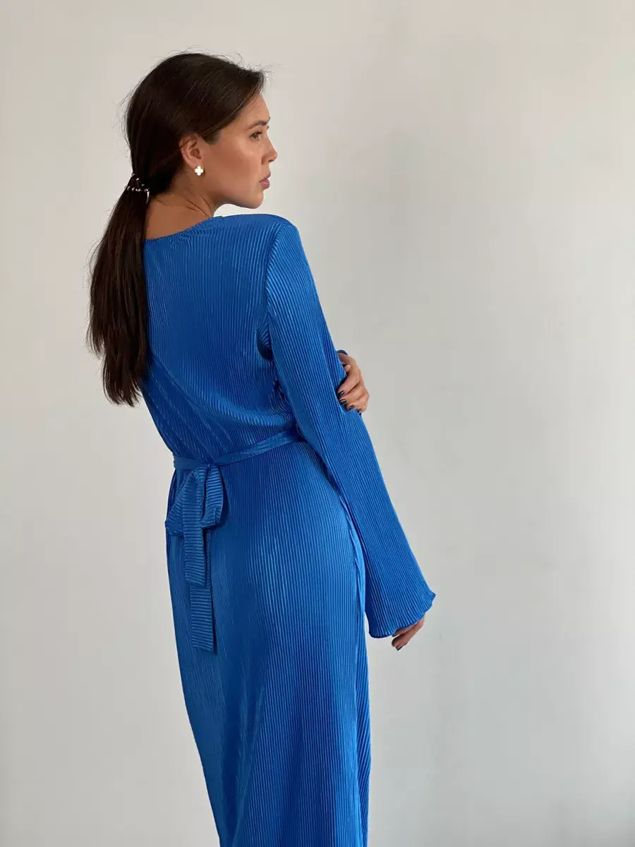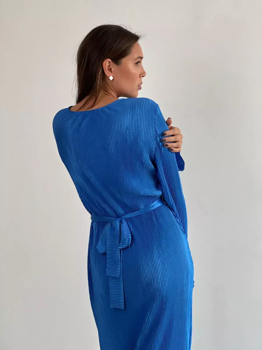 Женское платье миди с длинным рукавом. Стильная модель из плиссированной ткани поможет вам создать удобный образ на каждый день. Базовое уютное платье выглядит модно и отлично подойдет любому типу фигуры. Полуприлегающий силуэт хорошо подчёркивает изгиб талии и бедер. Такой материал позволяет вещи не вытягиваться, не скатываться "катышками и не деформироваться после стирки и красиво сидеть на любой фигуре. За счет хорошей плотности ткани хорошо держит форму. Используем ткань только высшего качества Турецкого производства. Облегающего силуэта с поясом поражает своей простотой и элегантностью, которое подчеркнет вашу женственность и изящество. Оно позволяет двигаться с комфортом и свободно, создавая при этом элегантный и современный образ. Привлекает внимание не только своим дизайном, но и своей универсальностью. Оригинальное прямое платье можно надеть в офис на работу и на учебу. Слегка облегающий приталенный покрой не сковывает движения, что важно для повседневной носки. Отлично подходит на демисезонный период осенью и зиму. Это универсальная интересная вещь, которую можно носить в прохладную погоду. Красивые цвета и минималистичный дизайн сделают ее незаменимой в вашем гардеробе. Наша продукция станет прекрасным подарком подруге, сестре, любимой дочке на любой праздник: новый год, день рождение, 8 марта. Невероятно комфортная, приятная к телу модель правильной длины ниже колен идеальна для отдыха дома как домашняя одежда и на даче, в отпуск для прогулок на природе. Разрабатываем и шьем сами в России.