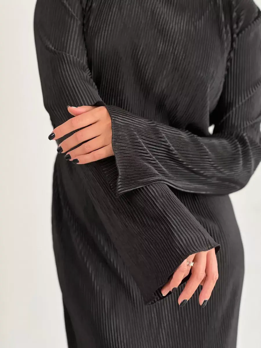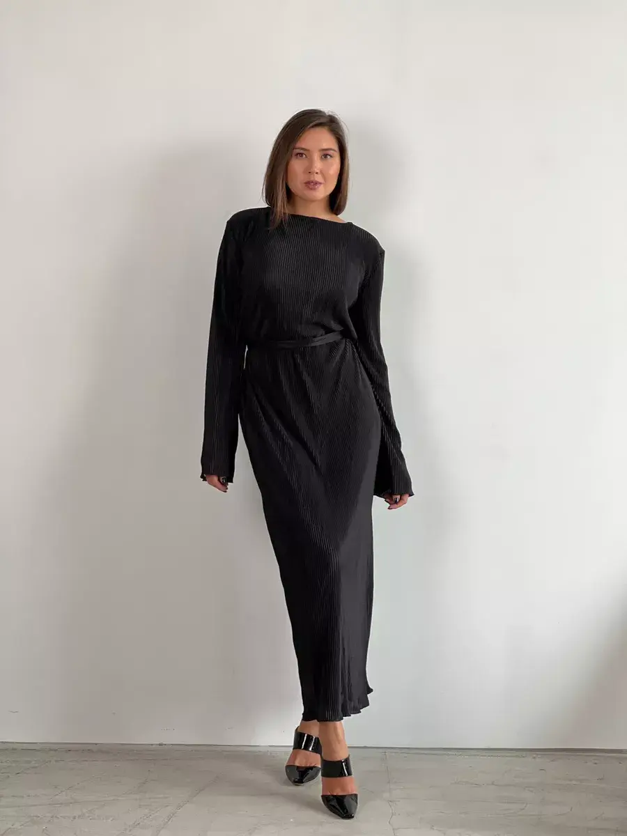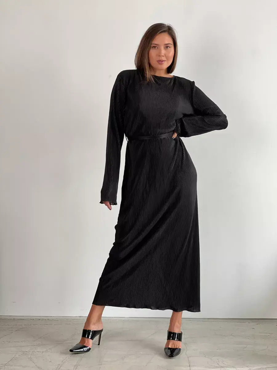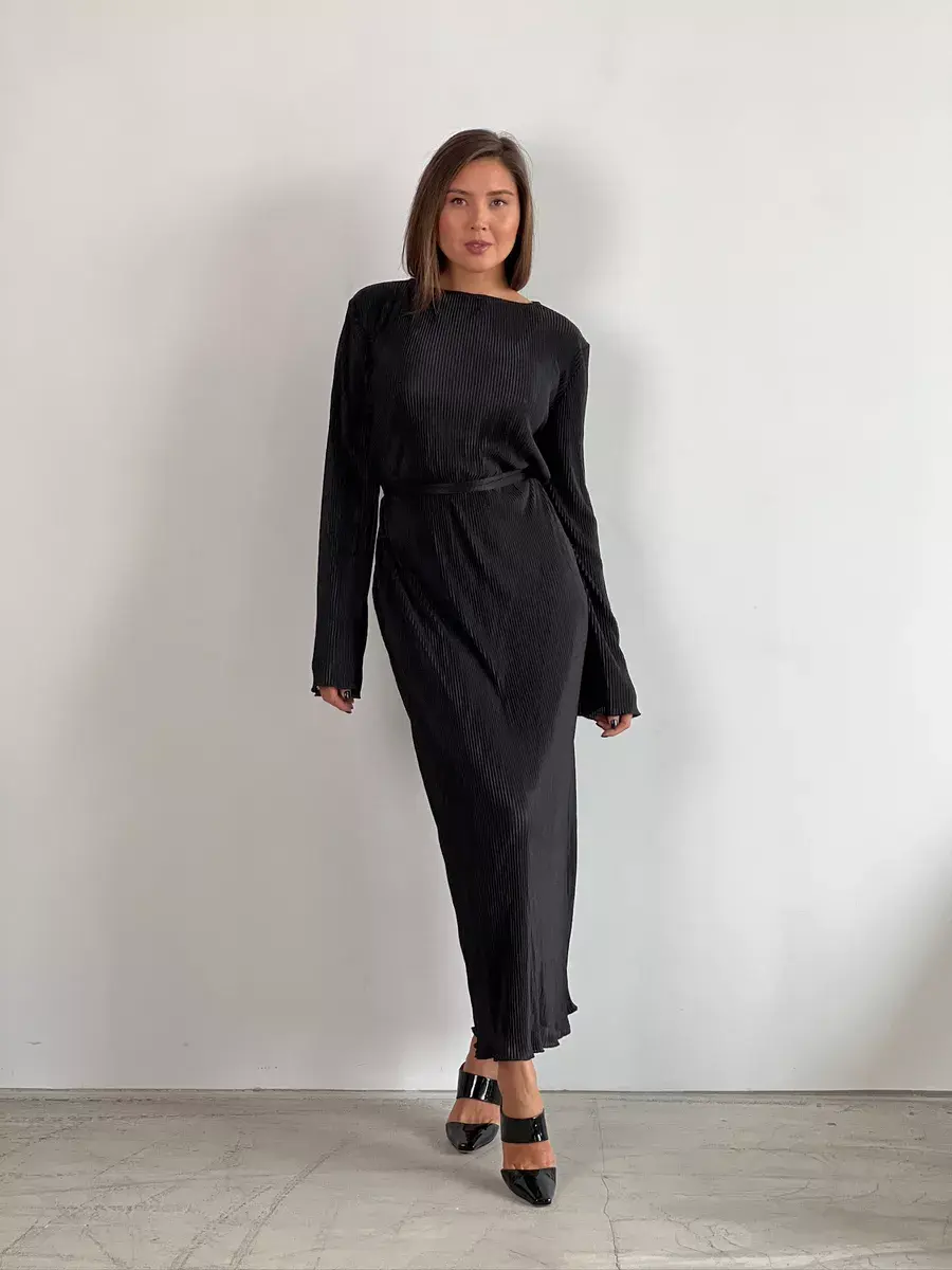 платье плиссе-черное