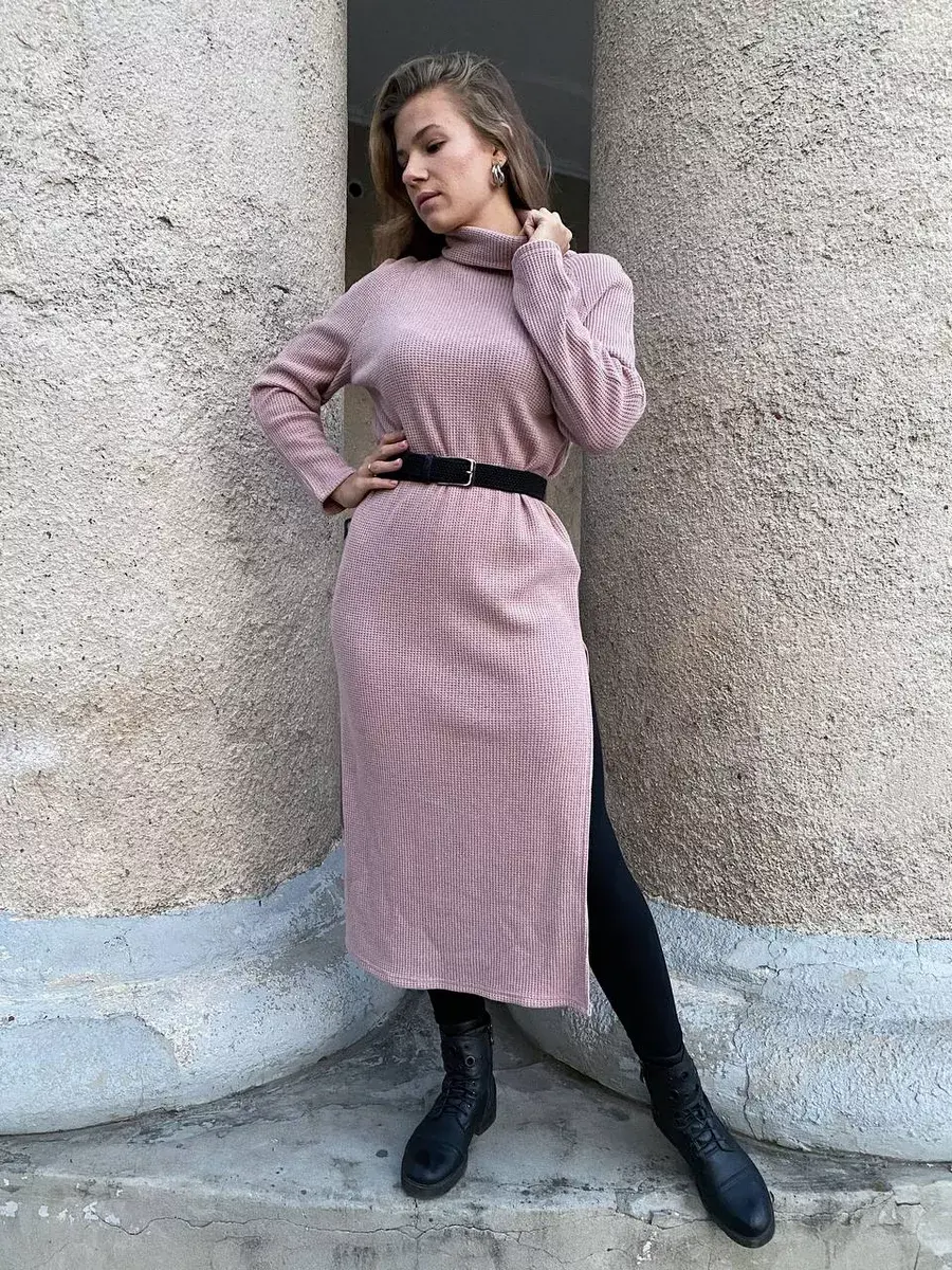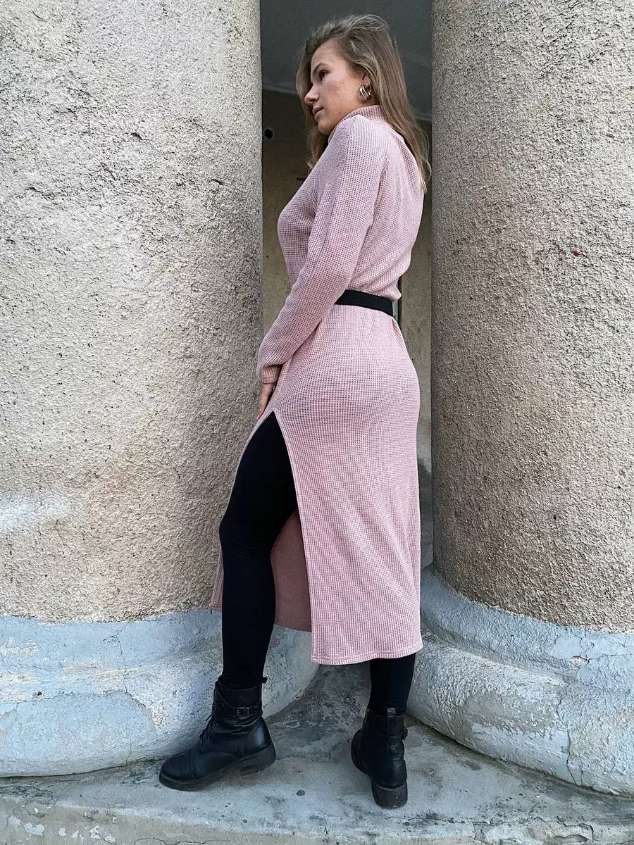 Женское теплое трикотажное платье миди с длинным рукавом. Плотное и приятное на ощупь вязаное полотно. Стильная модель с высоким воротником поможет вам создать удобный образ на каждый день. Базовое уютное платье в стиле выглядит модно и отлично подойдет любому типу фигуры. Полуприлегающий силуэт хорошо подчёркивает изгиб талии и бедер. Уютный трикотаж высокой плотности состоит из 50% вискозы. Такой материал позволяет вещи не вытягиваться, не скатываться "катышками и не деформироваться после стирки и красиво сидеть на любой фигуре. За счет хорошей плотности ткани хорошо держит форму. Используем ткань только высшего качества Турецкого производства. Облегающего силуэта, без застежек с высоким горлом поражает своей простотой и элегантностью, которое подчеркнет вашу женственность и изящество. Оно позволяет двигаться с комфортом и свободно, создавая при этом элегантный и современный образ. Привлекает внимание не только своим дизайном, но и своей универсальностью. Трикотажное оригинальное прямое платье с разрезом можно надеть в офис на работу и на учебу. Слегка облегающий приталенный покрой не сковывает движения, что важно для повседневной носки. Модель выполнена в спортивном стиле и поэтому подойдет как молодежное для подростков, а также для молодых мам для прогулок с коляской. Отлично подходит на демисезонный период осенью и зиму, ведь плотный трикотаж, из которого оно сшито прекрасно сохраняет тепло. Это универсальная интересная вещь, которую можно носить в прохладную погоду. Красивые цвета и минималистичный дизайн сделают ее незаменимой в вашем гардеробе. Наша продукция станет прекрасным подарком подруге, сестре, любимой дочке на любой праздник: новый год, день рождение, 8 марта. Невероятно комфортная, приятная к телу модель правильной длины ниже колен идеальна для отдыха дома как домашняя одежда и на даче, в отпуск для прогулок на природе. Разрабатываем и шьем сами в России.