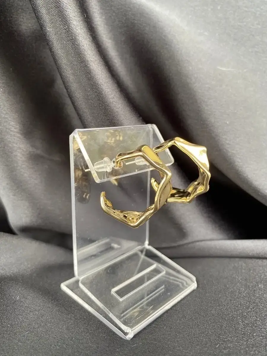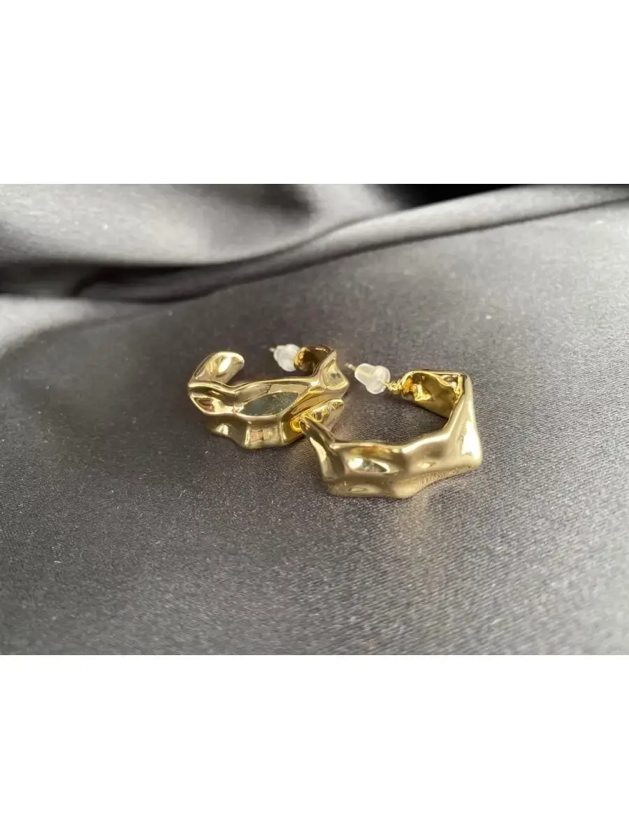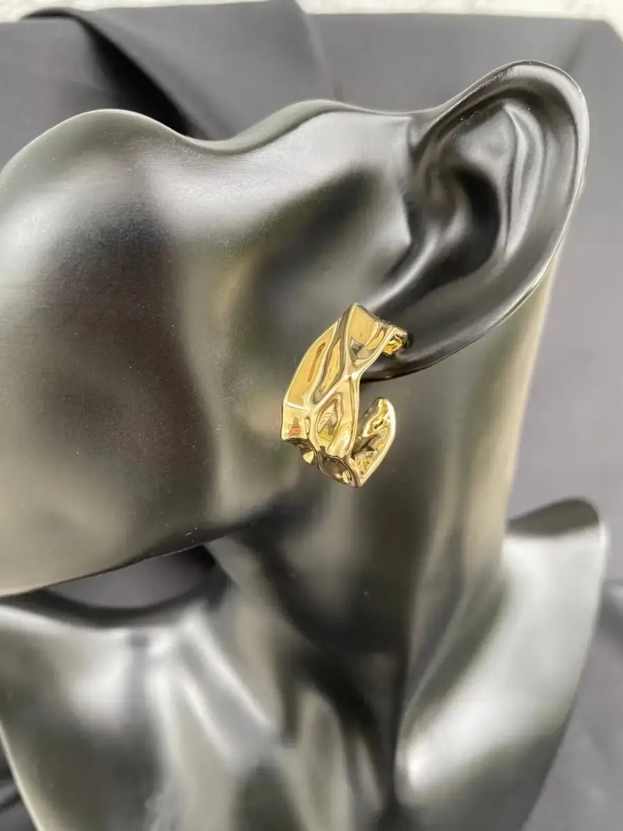 Стильные серьги. Очень интересно смотрятся на ушке, а мятый металл придает изюминку. Стойкое покрытие прослужит вам годами. Упакованы в крафт-коробочку.