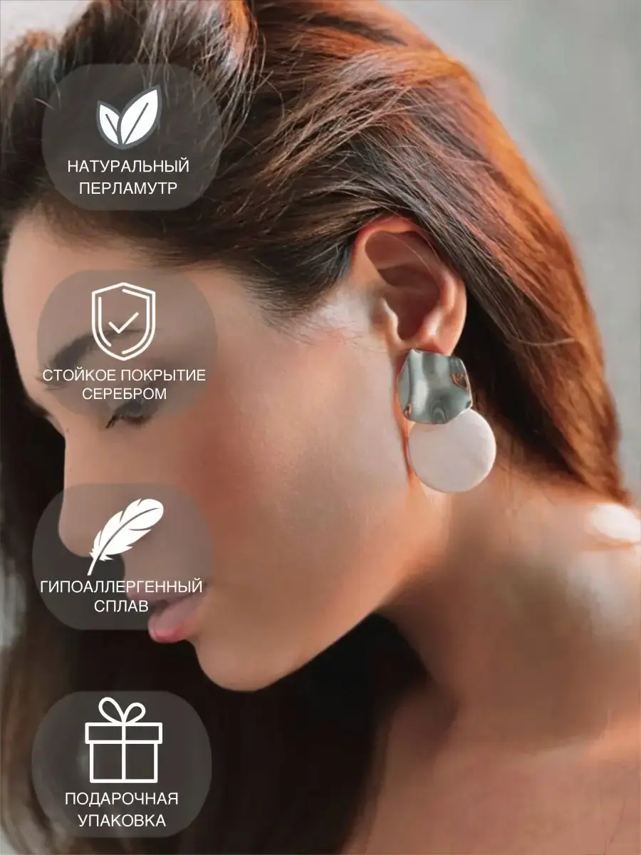 Стильные серьги с натуральным перламутром ручной работой. Произведены в России из качественных материалов. Натуральный перламутр и посеребрение. Сережки с белым камнем — это классика, которая никогда не выйдет из моды и всегда подчеркнет хороший вкус обладательницы. Украшение изготовлено из гипоаллергенного сплава с посеребренным покрытием, что обеспечивает долгую и комфортную носку. Их можно одевать на целый день и не бояться, что ухо негативно отреагирует на бижутерию. Очень стойкое покрытие не облезет после первого применения, а прослужит вам годами. Крупные серьги дополнят любой образ современной стильной женщины. Они будут подчеркивать изгиб шеи, дополняя ваш дневной и вечерний образ. Модные серьги, выполненные из бижутерного сплава серебристого цвета подчеркнут вашу элегантность. Не тяжелые и не тянут мочку уха. Подойдут как для торжества - свадьба и выпускной, корпоратив и вечеринка, так и для повседневной носки - в офис и на учебу, на работу, на прогулку, фотосессию. Представлены в цвете: серебро. Понравятся подросткам, девушкам и женщинам. Аксессуары в качестве свадебной бижутерии для невесты. Вечернее праздничное украшение эффектно смотрится с современными нарядами. Это отличный подарок на день рождения любимой девушке, женщине. Приятный презент на юбилей сестре и маме. Упакованы в подарочную коробочку. В нашем магазине вы найдете украшения на все случаи жизни! Будем рады видеть ваши отзывы, так как нам важно мнение покупателей.