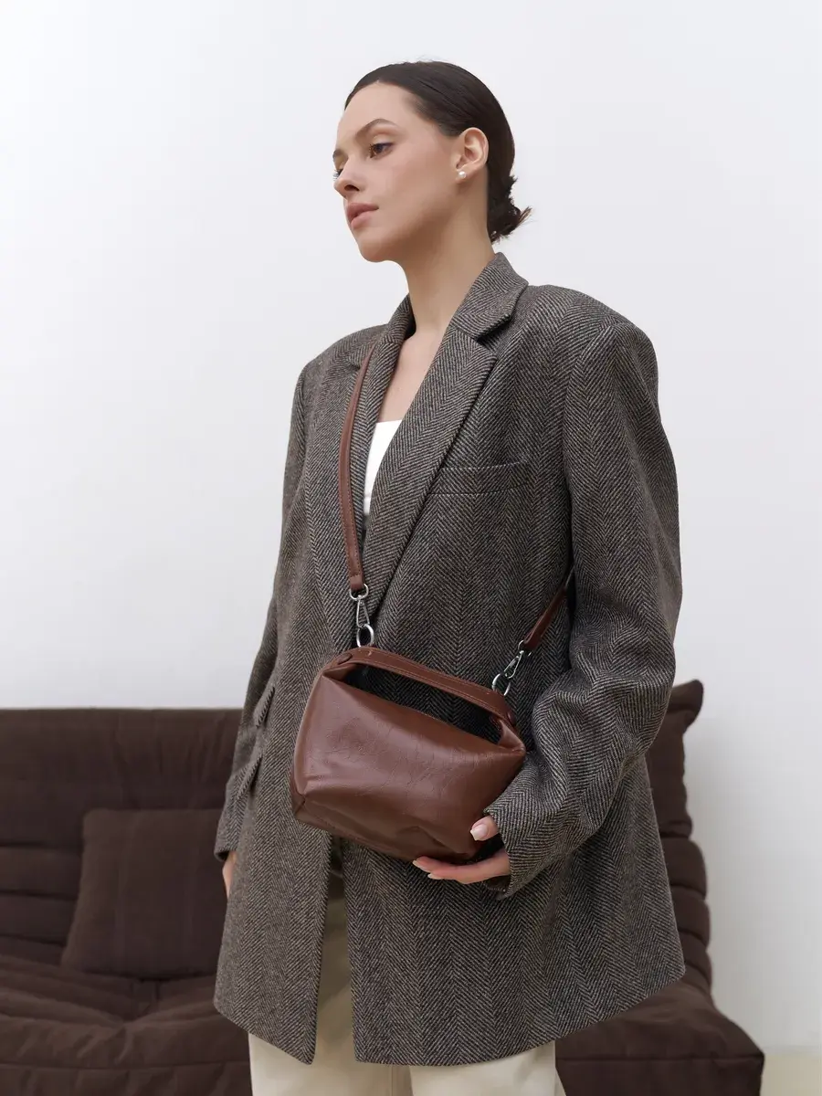 Необычная маленькая сумка через плечо добавит женственному образу неповторимый шик и привлекательность. Оригинальные модные сумки пользуются любовью среди девушек и женщин разных возрастов. Стильная классическая сумка - это незаменимый аксессуар любого женского офисного образа. Размер 23х16х13 см. Милый съемный брелок из металла. Лаконичная сумка выполнена из качественной искусственной кожи. Приятная на ощупь экокожа, практичней натуральной кожи, так как она более износостойкая и легкая, не рвется, не трескается на морозе, водонепроницаемая, не выгорает на солнце и долго сохраняет эстетичный внешний вид. Без запаха, имеет прочные и ровные швы. Ее мягкая кожаная текстура придает ей элегантность, при этом хорошо держит жесткую твердую форму, а крепкий каркас и качественная металлическая фурнитура делают ее прочным и надежным. В комплекте идет длинный регулируемый съёмный ремешок. Благодаря им ее удобно носить на плече как кросс боди. Ее можно носить через плечо, в руке, на локте. Крепкая подкладочная ткань. Альтернатива хобо и багету. Благодаря своему крутому дизайну вечерняя небольшая сумка будет привлекать внимание. Она идеально подойдет как для повседневного использования, так и для особых случаев: вечеринка в клубе, праздник или свадьба. Трендовая дизайнерская кросс-боди поможет выделиться из толпы. Базовая компактная дамская сумка надежно закрывается на молнию. Модная и трендовая модель будет идеально сочетаться с классикой, с молодежным стилем, а также с деловым и нарядным образом. Удобная и практичная, но при этом она нисколько не стесняет движений в повседневной жизни. Универсальный в стиле old money - выбор для современных девушек и женщин. Просторный внутренний отдел позволяет легко разместить все необходимые предметы, начиная от кошелька и ключей до косметички.