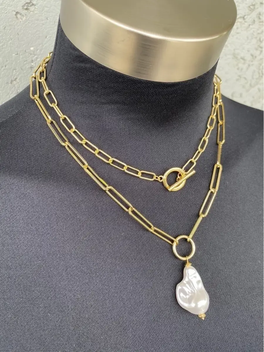Стильная цепочка на шею под золото – это модное украшение, которое подчеркнет ваш образ. Цепь выполнена из высококачественного бижутерного сплава. У данных цепочек удобный замочек карабин. Ожерелье небольшого веса, звенья гладкие, не повреждают кожу. Состоит из двух цепочек, которые можно носить вместе, раздельно или одевать одну на шею, другую на руку браслетом в два оборота. Качественное покрытие, бусина пластиковая. Крупная цепь с подвеской отлично подойдёт как девочкам подросткам, так и девушкам под рубашку или футболку. Тройная цепочка на шею женская - оригинальное колье с подвеской в виде ключика и замочка. Изящный дизайн бижутерии с декоративными элементами подчеркнет вашу индивидуальность. С таким колье вы всегда будете в центре внимания. Многослойная цепочка на шею станет отличным подарком для любимой, подруге, сестре или маме, подростку, дочке, крестнице, внучке. У нас вы найдете оригинальный подарок для женщин на любой праздник, день рождения, новый год или 8 марта.