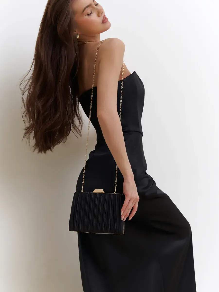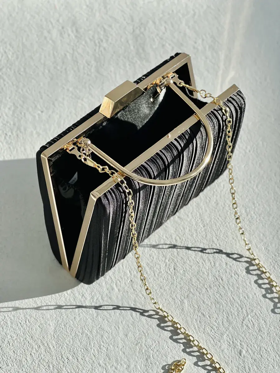 Стильная вечерняя сумка – это как маленькое черное платье, которое должно быть в гардеробе у каждой женщины. Это незаменимый аксессуар любого женского праздничного образа. Идеально для выпускного и свадьбы! Лаконичная небольшая сумочка выполнена из качественной износостойкой ткани. Без запаха, имеет прочные и ровные швы. Материал приятен на ощупь. Размер: 20х14х5. В комплекте идет длинная нерегулируемая съёмная цепочка 118 см, благодаря ей ее удобно носить на плече как кросс боди. Крепкая подкладочная ткань. Базовая компактная дамская сумка надежно закрывается на магниты. Внутри одно вместительное отделение и внутренний карман для мелочей и телефона. Стильная золотая цепь добавляет эффектности и выполнена из легкого материала, который не утяжеляет и абсолютно не гремит. Можно разместить кошелек и ключи, смартфон, косметику и чехол с очками. Модная и трендовая модель будет идеально сочетаться с классикой, с молодежным стилем, а также с деловым и нарядным образом. Элегантная классическая кроссбоди украсит вас на вечеринке или выпускном, на корпоратив в офисе, на свидание в ресторан, на дискотеку в клуб, на девичник на свадьбе подружкам невесты. Красивая сумочка с цепью подойдет для вечерней прогулки с подружками, будет уместна на выход в ресторан или отдых в кафе. Удобно и практично, при этом она нисколько не стесняет движений в повседневной жизни. Клатч - идеальный аксессуар для любого торжества. Переливаясь в вечернем мерцании он придает образу изюминку, смотрится эффектно и необычно. Блестящая отделка золото придает клатчу сверкающий вид, который привлекает взгляды окружающих. Если вы ищете свадебный клатч, то он безусловно подарит вам ощущение особой роскоши невесте в этот важный день. Это прекрасный подарок для любимых женщин, девушек, жен, мам и подруг!