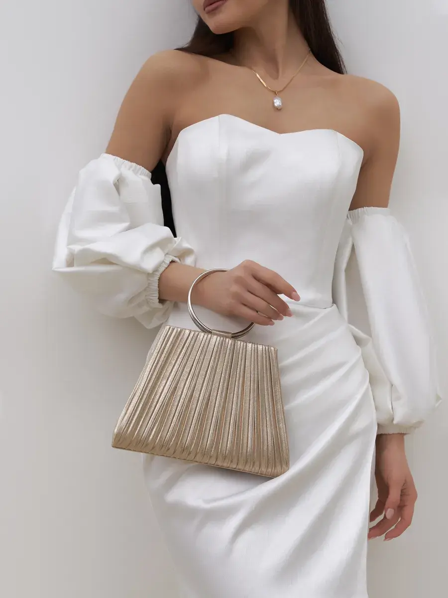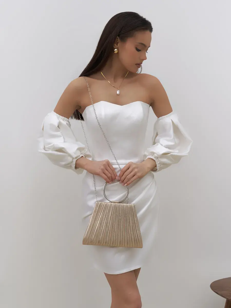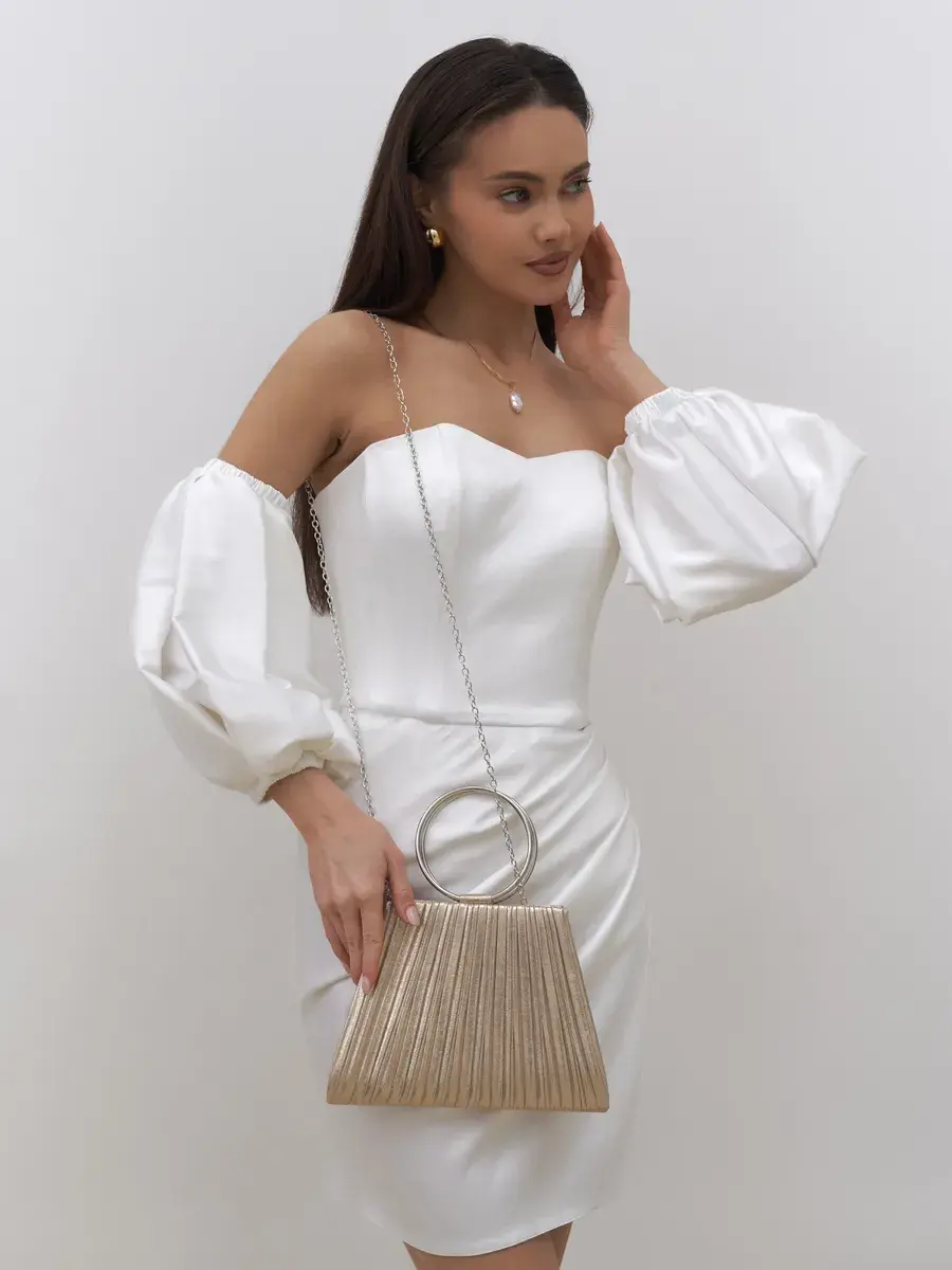 Стильная вечерняя сумка – это как маленькое черное платье, которое должно быть в гардеробе у каждой женщины. Это незаменимый аксессуар любого женского праздничного образа. Идеально для выпускного и свадьбы! Лаконичная небольшая сумочка выполнена из качественной износостойкой ткани. Без запаха, имеет прочные и ровные швы. Материал приятен на ощупь. Размер: 23х17х4. В комплекте идет длинная нерегулируемая съёмная цепочка 118 см, благодаря ей ее удобно носить на плече как кросс боди. Крепкая подкладочная ткань. Базовая компактная дамская сумка надежно закрывается на магниты. Внутри одно вместительное отделение и внутренний карман для мелочей и телефона. Стильная золотая цепь добавляет эффектности и выполнена из легкого материала, который не утяжеляет и абсолютно не гремит. Можно разместить кошелек и ключи, смартфон, косметику и чехол с очками. Модная и трендовая модель будет идеально сочетаться с классикой, с молодежным стилем, а также с деловым и нарядным образом. Элегантная классическая кроссбоди украсит вас на вечеринке или выпускном, на корпоратив в офисе, на свидание в ресторан, на дискотеку в клуб, на девичник на свадьбе подружкам невесты. Красивая сумочка с цепью подойдет для вечерней прогулки с подружками, будет уместна на выход в ресторан или отдых в кафе. Удобно и практично, при этом она нисколько не стесняет движений в повседневной жизни. Клатч - идеальный аксессуар для любого торжества. Переливаясь в вечернем мерцании он придает образу изюминку, смотрится эффектно и необычно. Блестящая отделка золото придает клатчу сверкающий вид, который привлекает взгляды окружающих. Если вы ищете свадебный клатч, то он безусловно подарит вам ощущение особой роскоши невесте в этот важный день. Это прекрасный подарок для любимых женщин, девушек, жен, мам и подруг!