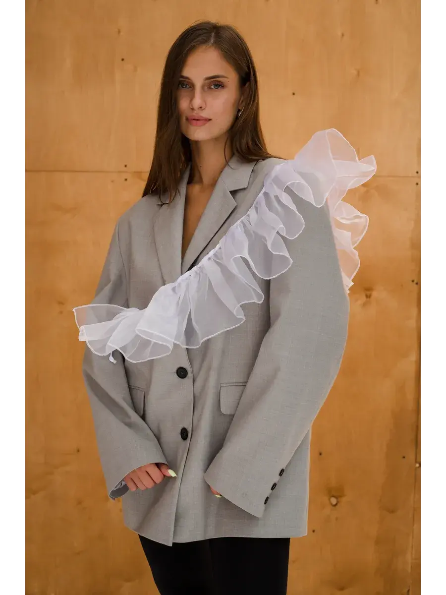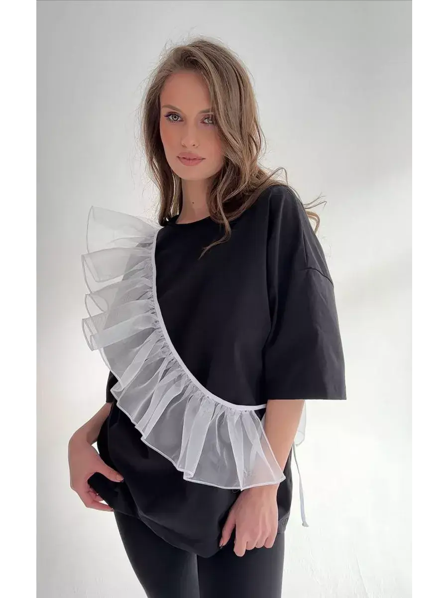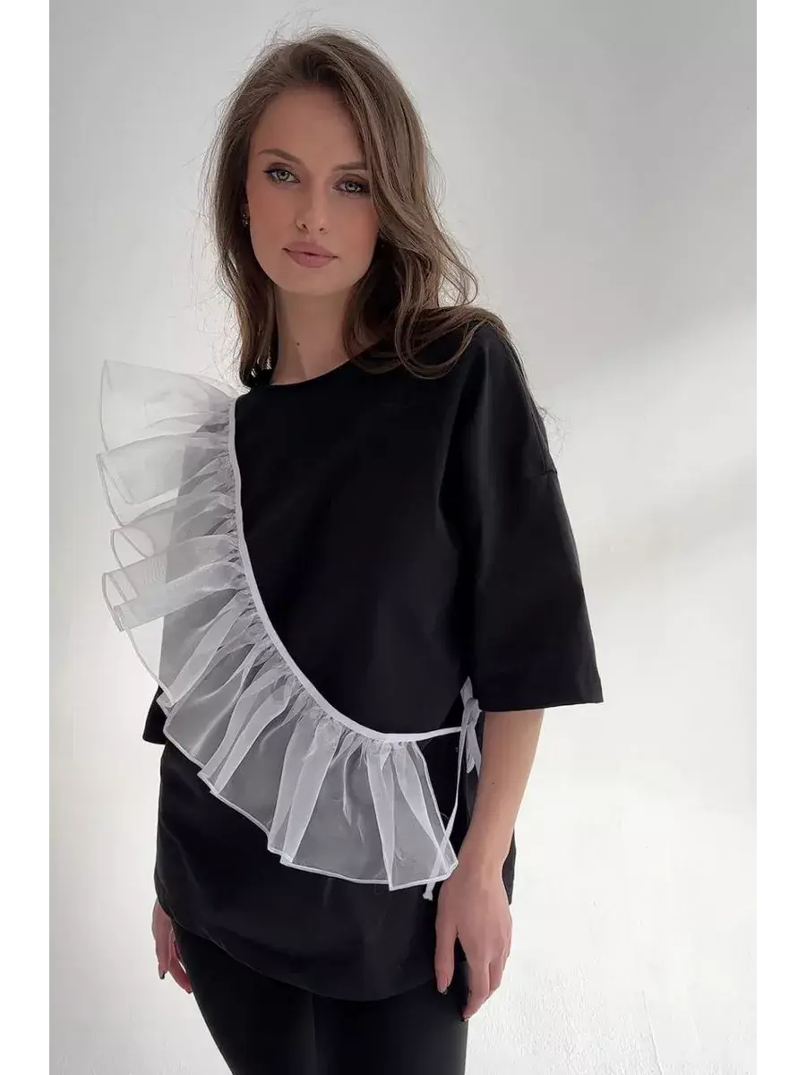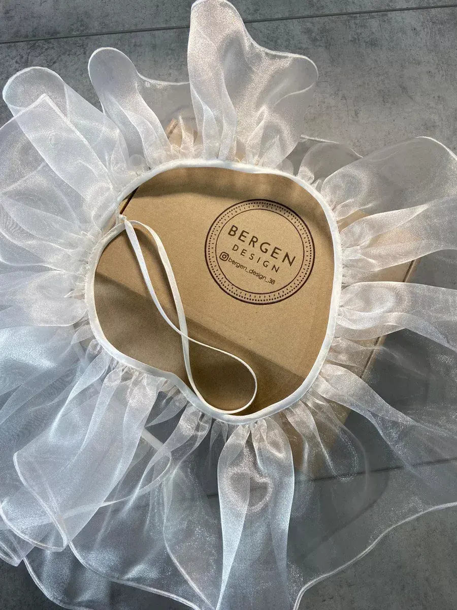Накладной воротник — это оригинальный и эффектный аксессуар любой модницы. Идеальная акцентная деталь на любой праздник и торжество - 8 марта, 23 февраля, день рождение, корпоратив, выпускной. Объемный воротничок с воланами является трендовой деталью для праздничного наряда или повседневного на работу в офис и в школу. Варианты ношения: на одно плечо или на шею, на грудь или на талию. Длина без завязок 1 метр, ширина – 16 см. Съемная баска с завязками – это универсальное украшение для женщин и девушек подростков. Жабо манишка дополнит вечерний женственный наряд и придаст образу романтичность и нежность, можно надеть в театр, на праздник или как деталь для вечеринки, фотосессии или на свидание. Особенно стильно будет сочетаться с брутальными вещами: свитшот, футболка, тренч, косуха. Также можно создавать более женственный образ, при сочетании с лаконичными платьями, блузами, свитерами. Рюша – акцентная деталь, поэтому сочетать ее лучше с предметами гардероба с минималистичным кроем. В этом случае базовые изделия гардероба замечательно подойдут: пиджаки и джемперы, брюки, джинсы, юбки. Это отличный подарок для любимой подруги и девушке, маме и жене, сестре. Хорошо держит форму и объем, важно после упаковки разутюжить складки или отпарить на низких температурах, так рюши раскроются, как бутон цветка. Баска на одно плечо подойдет для стильного офисного делового стиля. Базовые вещи - будут выглядеть по-другому с этим аксессуаром. Садится на любую фигуру от 40-56 размера. Произведено в России. Ручная работа. Информация по уходу: Ручная стирка при температуре не более 30 %