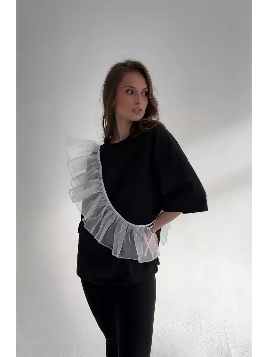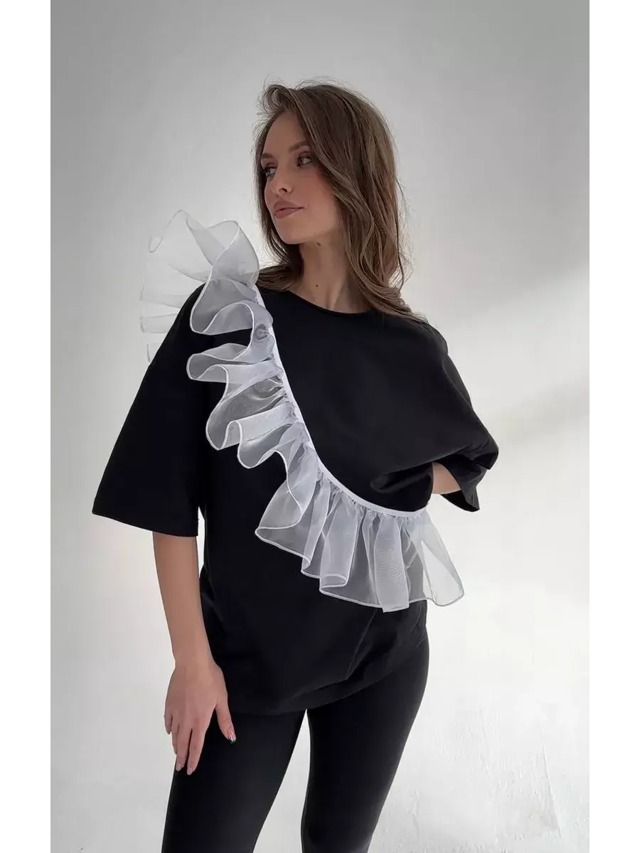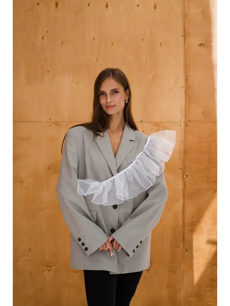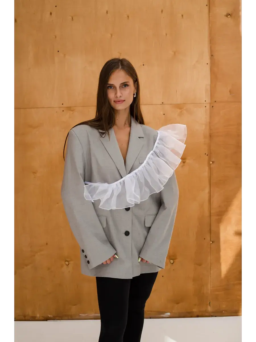 Накладной воротник — это оригинальный и эффектный аксессуар любой модницы. Идеальная акцентная деталь на любой праздник и торжество - 8 марта, 23 февраля, день рождение, корпоратив, выпускной. Объемный воротничок с воланами является трендовой деталью для праздничного наряда или повседневного на работу в офис и в школу. Варианты ношения: на одно плечо или на шею, на грудь или на талию. Длина без завязок 1 метр, ширина – 16 см. Съемная баска с завязками – это универсальное украшение для женщин и девушек подростков. Жабо манишка дополнит вечерний женственный наряд и придаст образу романтичность и нежность, можно надеть в театр, на праздник или как деталь для вечеринки, фотосессии или на свидание. Особенно стильно будет сочетаться с брутальными вещами: свитшот, футболка, тренч, косуха. Также можно создавать более женственный образ, при сочетании с лаконичными платьями, блузами, свитерами. Рюша – акцентная деталь, поэтому сочетать ее лучше с предметами гардероба с минималистичным кроем. В этом случае базовые изделия гардероба замечательно подойдут: пиджаки и джемперы, брюки, джинсы, юбки. Это отличный подарок для любимой подруги и девушке, маме и жене, сестре. Хорошо держит форму и объем, важно после упаковки разутюжить складки или отпарить на низких температурах, так рюши раскроются, как бутон цветка. Баска на одно плечо подойдет для стильного офисного делового стиля. Базовые вещи - будут выглядеть по-другому с этим аксессуаром. Садится на любую фигуру от 40-56 размера. Произведено в России. Ручная работа. Информация по уходу: Ручная стирка при температуре не более 30 %
