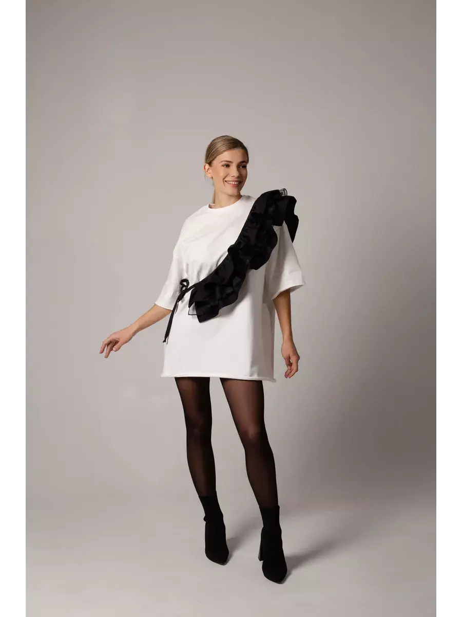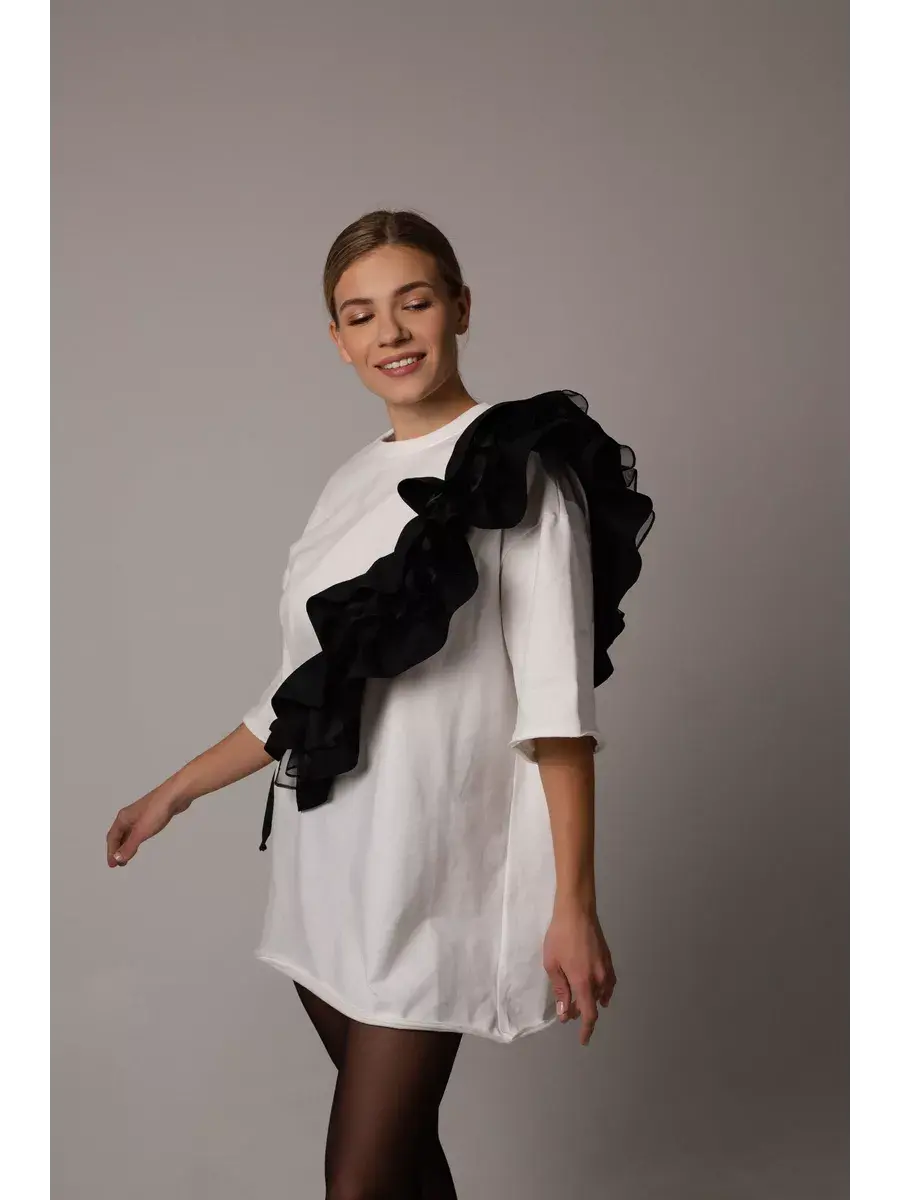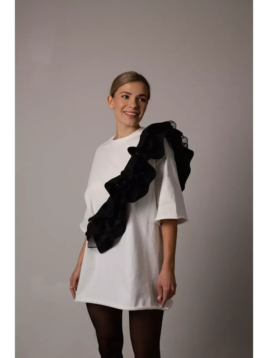 Накладной воротник — это оригинальный и эффектный аксессуар любой модницы. Идеальная акцентная деталь на любой праздник и торжество - 8 марта, 23 февраля, день рождение, корпоратив, выпускной. Объемный воротничок с воланами является трендовой деталью для праздничного наряда или повседневного на работу в офис и в школу. Варианты ношения: на одно плечо или на шею, на грудь или на талию. Длина без завязок 1 метр, ширина – 16 см. Съемная баска с завязками – это универсальное украшение для женщин и девушек подростков. Жабо манишка дополнит вечерний женственный наряд и придаст образу романтичность и нежность, можно надеть в театр, на праздник или как деталь для вечеринки, фотосессии или на свидание. Особенно стильно будет сочетаться с брутальными вещами: свитшот, футболка, тренч, косуха. Также можно создавать более женственный образ, при сочетании с лаконичными платьями, блузами, свитерами. Рюша – акцентная деталь, поэтому сочетать ее лучше с предметами гардероба с минималистичным кроем. В этом случае базовые изделия гардероба замечательно подойдут: пиджаки и джемперы, брюки, джинсы, юбки. Это отличный подарок для любимой подруги и девушке, маме и жене, сестре. Хорошо держит форму и объем, важно после упаковки разутюжить складки или отпарить на низких температурах, так рюши раскроются, как бутон цветка. Баска на одно плечо подойдет для стильного офисного делового стиля. Базовые вещи - будут выглядеть по-другому с этим аксессуаром. Садится на любую фигуру от 40-56 размера. Произведено в России. Ручная работа. Информация по уходу: Ручная стирка при температуре не более 30 %