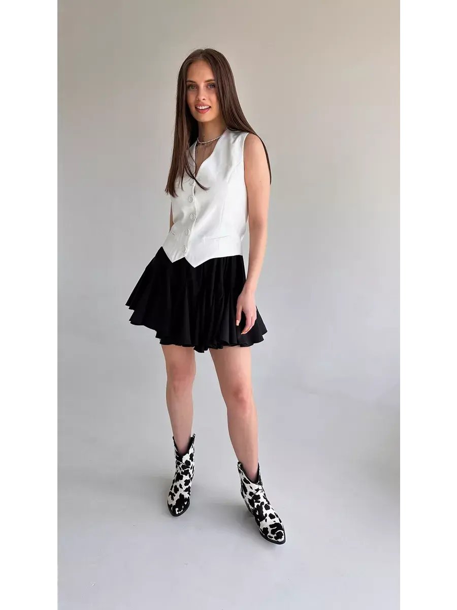 Женская мини юбка с клиньями – это тренд 2024 года наравне с баллонами и плиссированными теннисными моделями. Самая модная юбка с воланами из Пинтерест, которую ищут все модницы в этом сезоне. Необычная и привлекающая взгляды трендовая пышная юбка выполнена клиньями, которые придают ту самую воздушность и объём. Низ изделия асимметричный, края подогнуты, чтобы не было видно оверлока. Это модная и стильная деталь для твоего дерзкого, но в тоже время нежного образа. Укороченная расклешенная юбка солнце с высокой посадкой эффектно подчеркивает талию и удлиняет ноги. Длина модели - выше колена. Выполнена из высококачественной ткани - суперсофт, он легкий и нежный, гладкий и очень приятный на ощупь. Внешне супер-софт очень напоминает шелк и шифон. Молодежная крой клеш придаст вашему силуэту невероятную женственность. Сочетается с любым верхом и точно не оставит вас без внимания окружающих. Она предназначена для создания классического образа и может использоваться в качестве элемента делового на работу в офис или вечернего нарядного коктейльного образа на любой праздник: выпускной и корпоратив, девичник барби и день рождение, вечеринку и дискотеку в клуб, на свадьбу для подружки невесты. Подойдет под любой повседневный базовый стиль: на свидание и в гости, на прогулку и фотосессию. Понравится любителям аниме и косплеев, так как выглядит как японская или корейская школьная форма для учебы в школе и в университете. Летняя праздничная объёмная юбка в складку смотрится кокетливо и свежо. Короткая юбочка трапеция обрамлена воланами клеш и декорирована оборками и рюшами. Юбка колокол с ярусами не просвечивает. Эта красивая воздушная черная мини атласная выполнена из легкого и приятного плотного шелкового материала. Воланы снизу создают игривый и нежный образ, а резинка на талии обеспечивает максимальный комфорт. Летящее плиссе подойдет для женщин и для девочек подростков, высоких и для невысоких. Производство Россия.